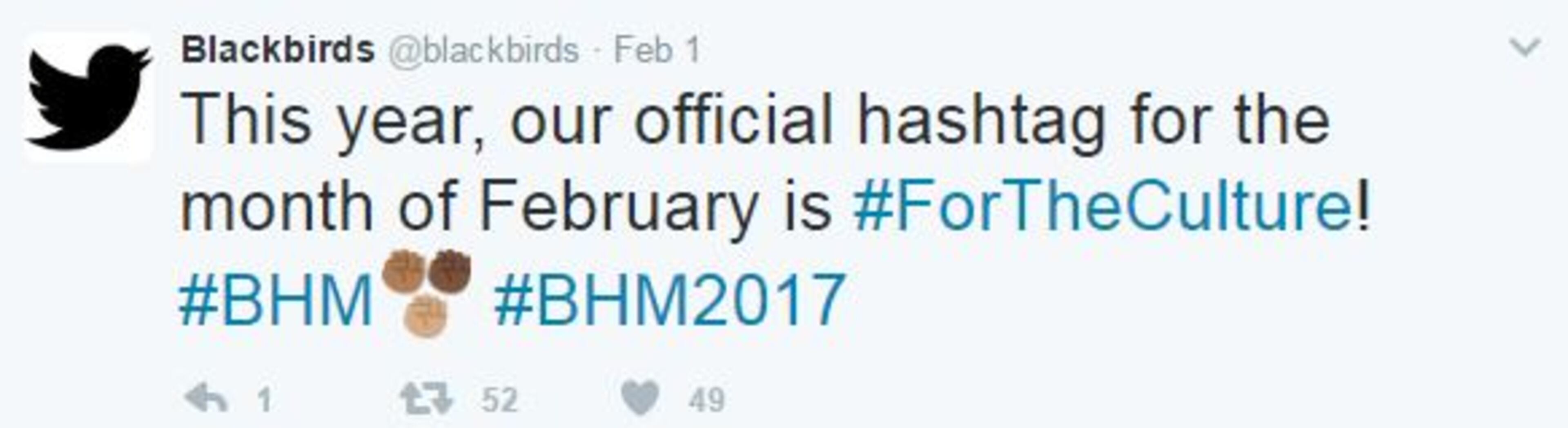 The Blackbirds have also created an official hashtag for February, #ForTheCulture, and the raised fist emoji accompanies the #BlackHistoryMonth and #BHM hashtags.