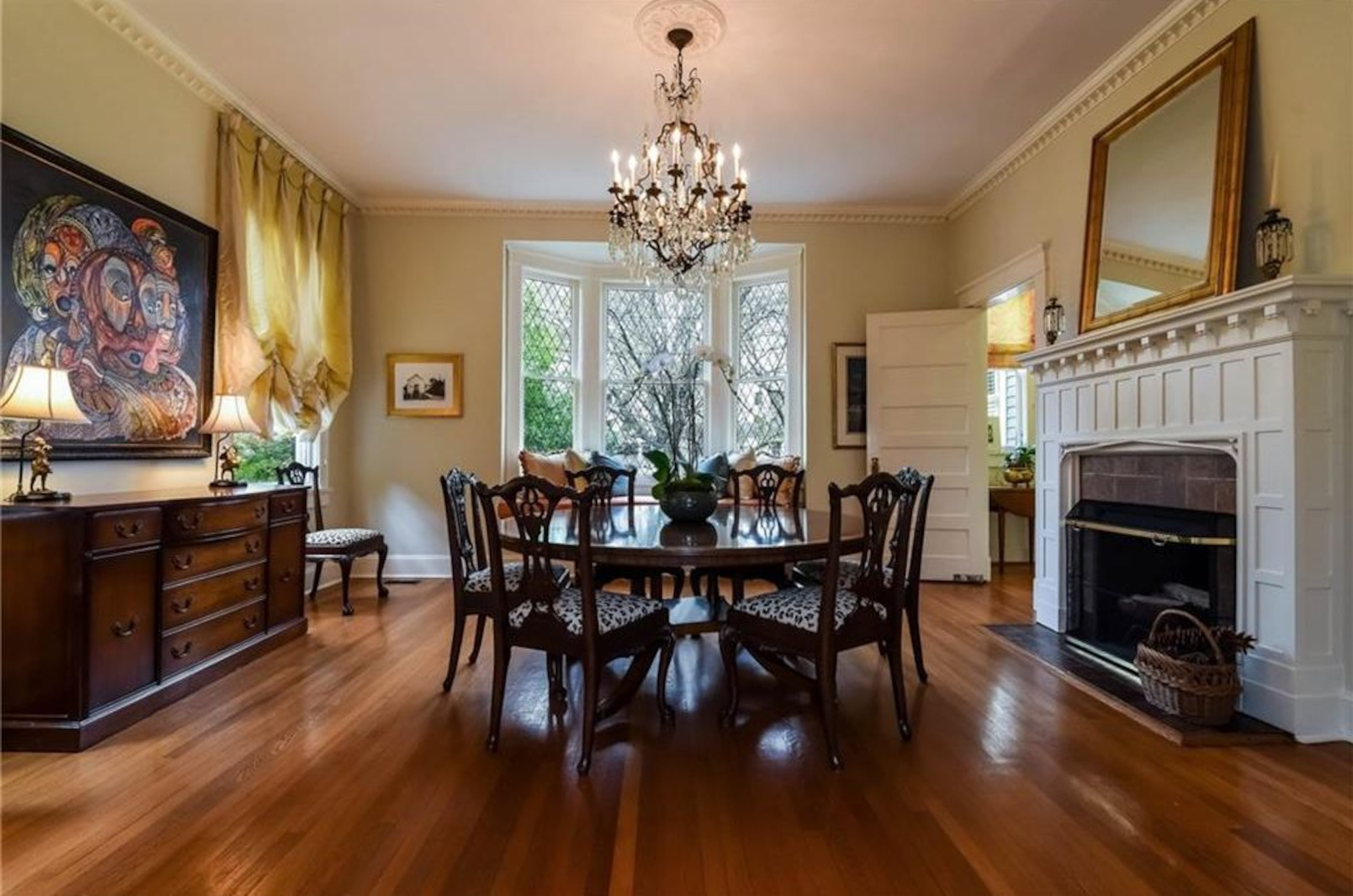 The four-bedroom, four-bath house includes original architectural details, such as 12-foot ceilings, leaded glass windows and seven working fireplaces. It is listed for $1,499,000.