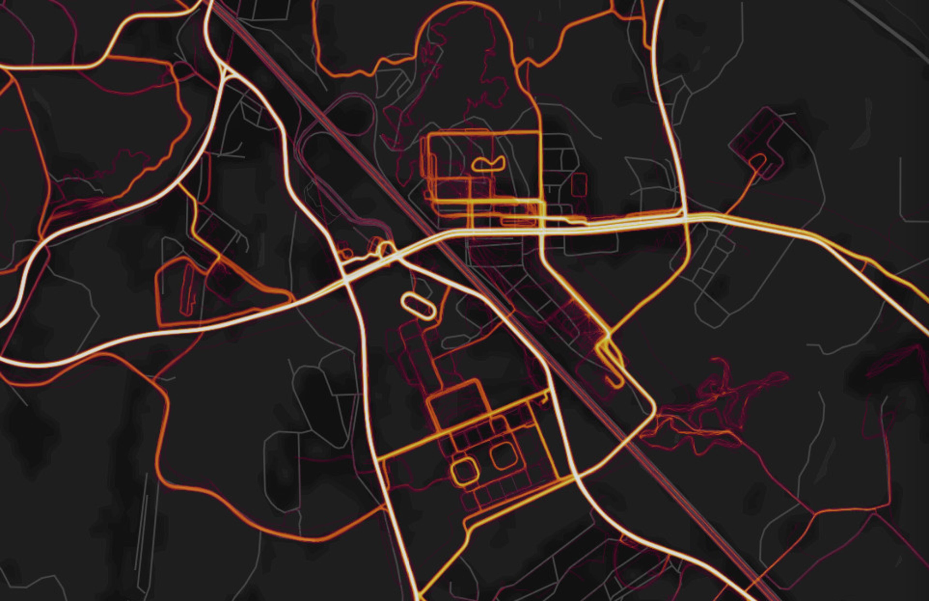 The Verge pointed out that you can easily cross-reference the Strava heat map visualization below of Fort Benning with Google Maps to see which roads people frequent:
