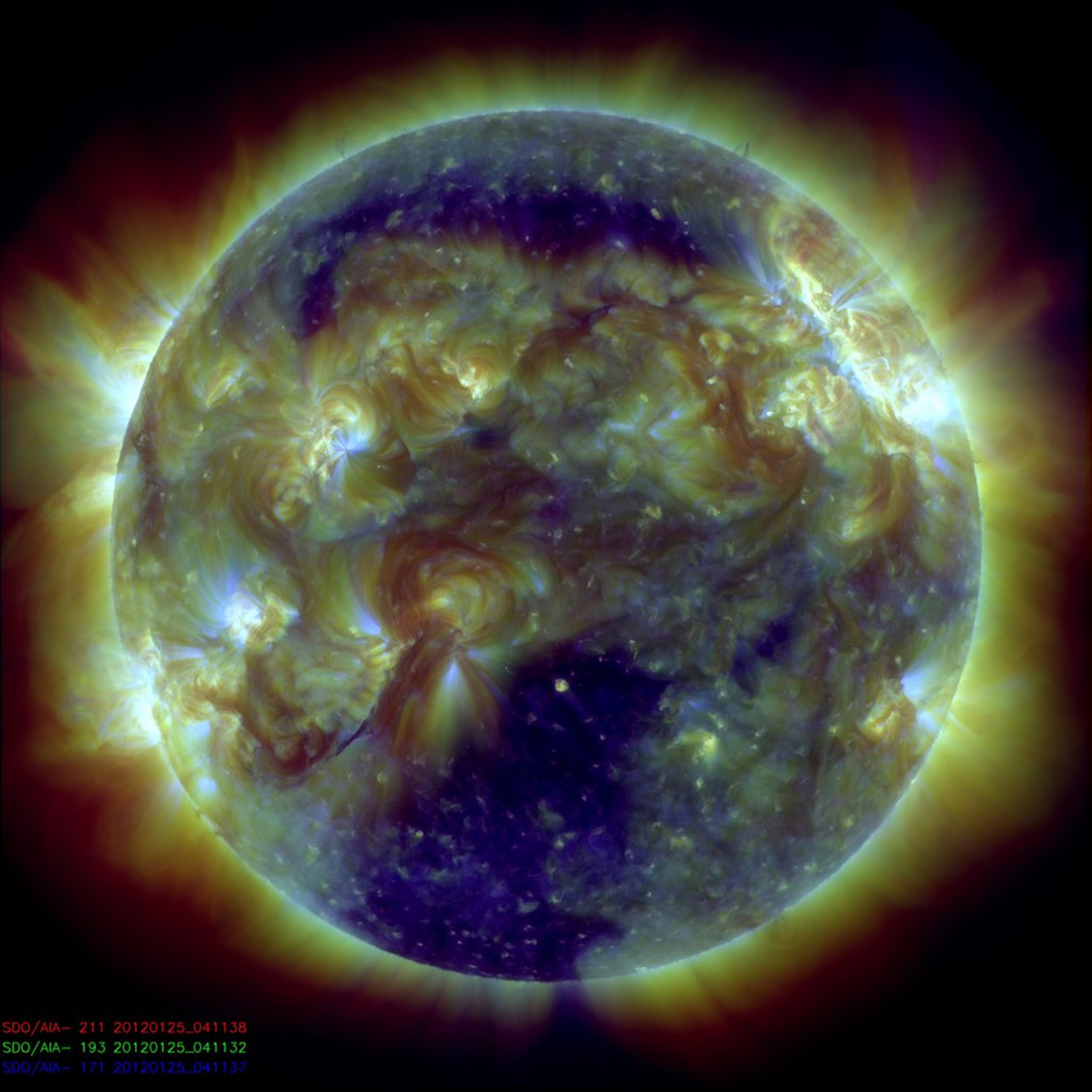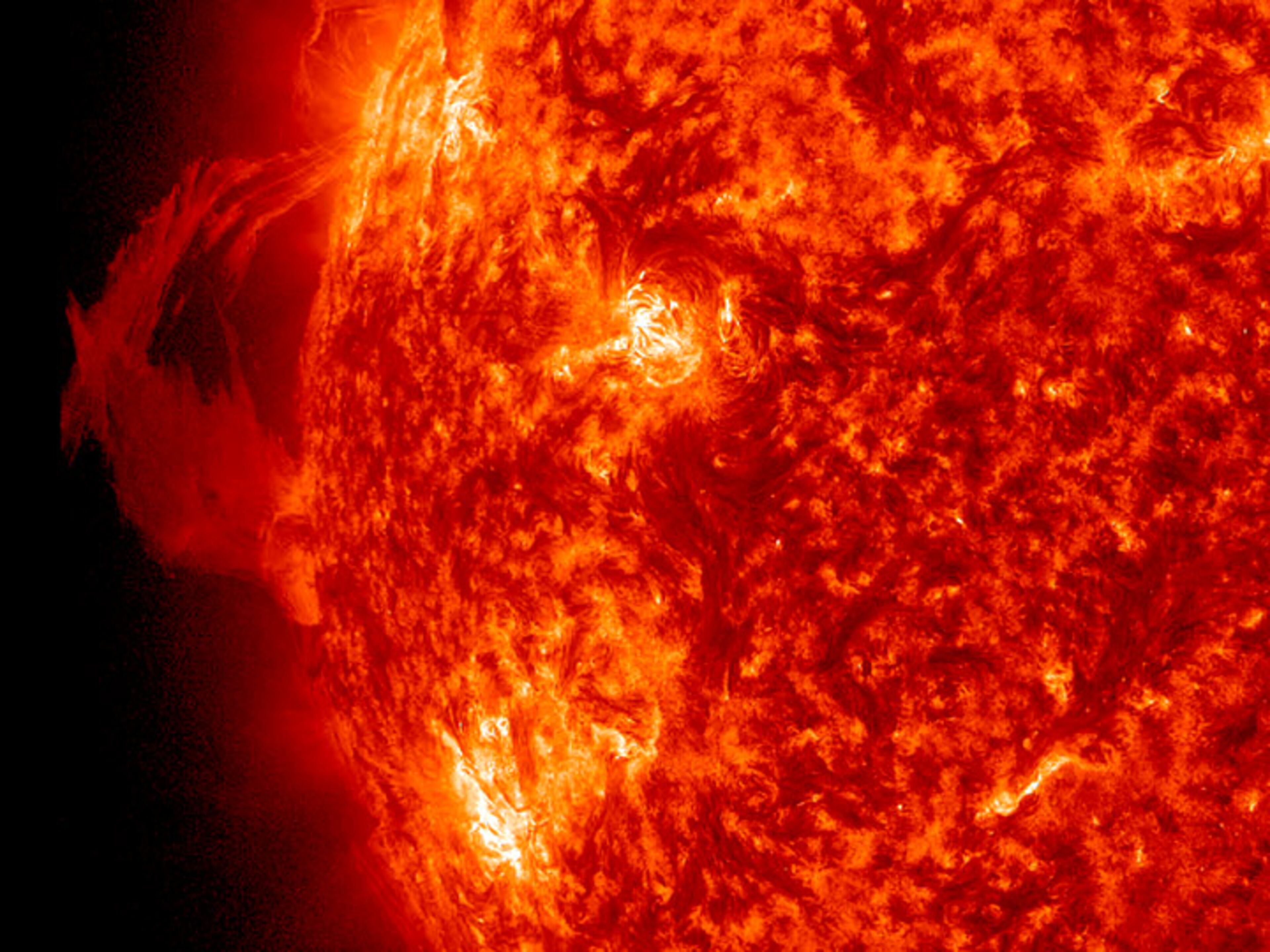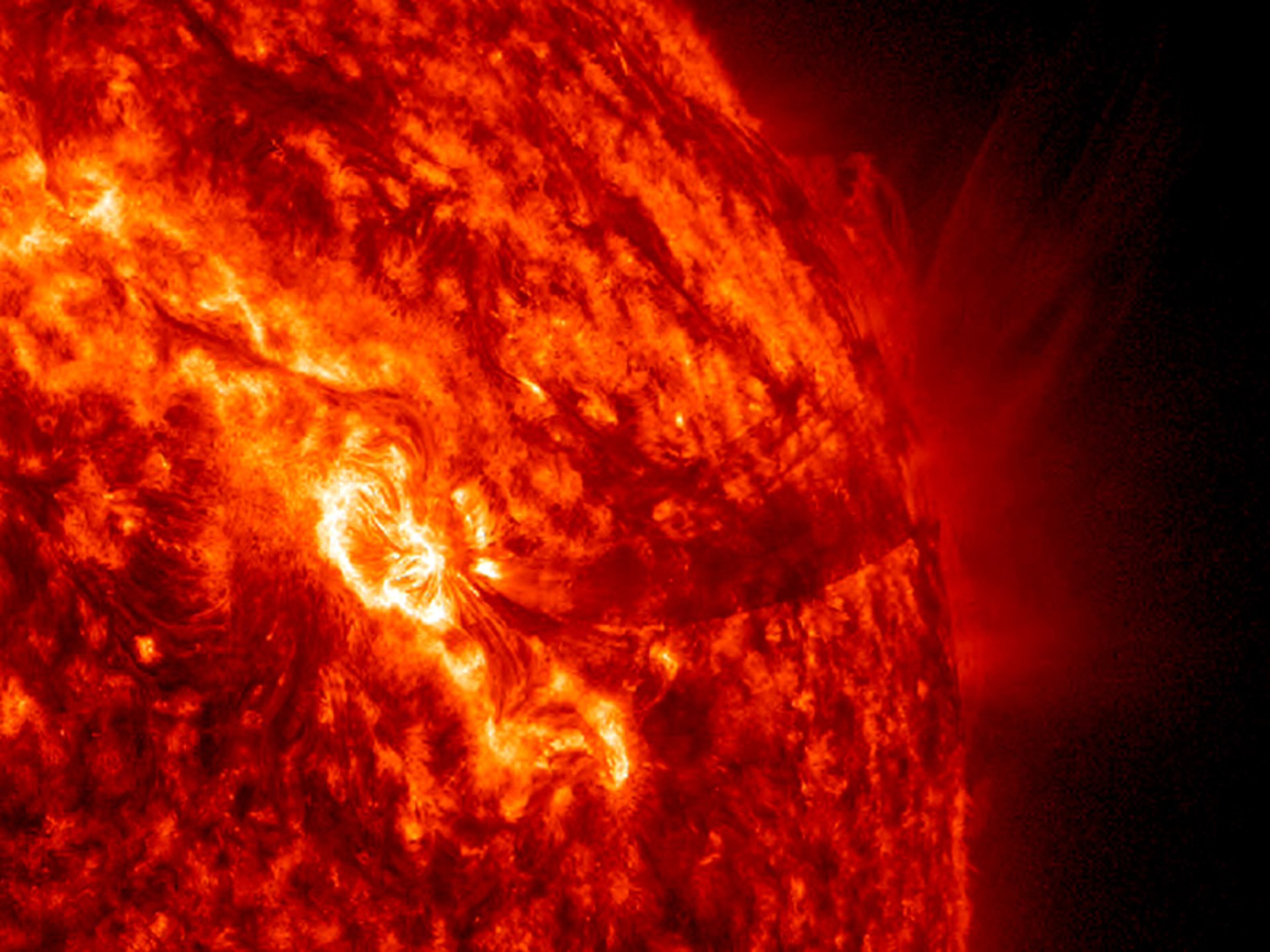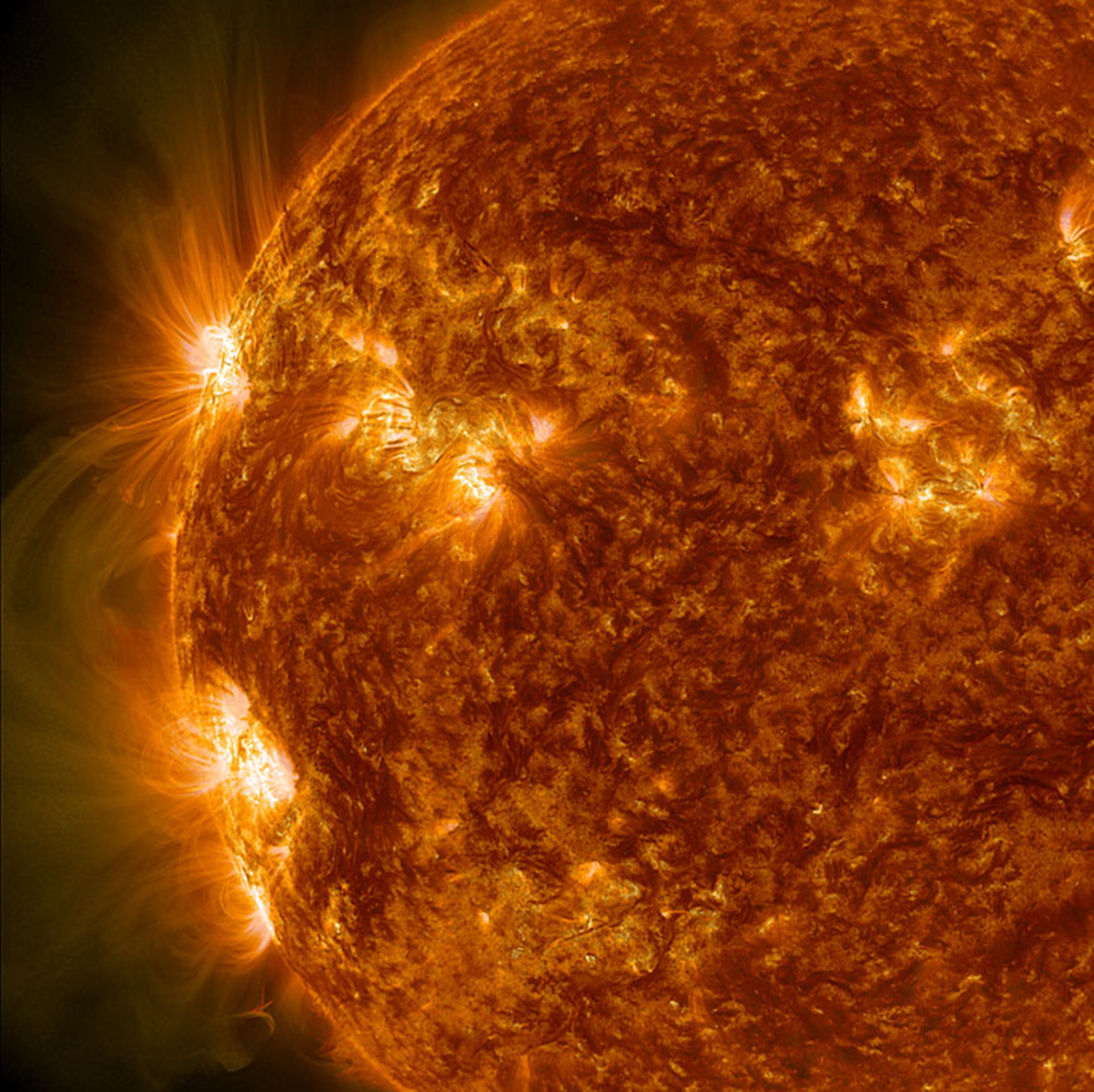 These images of the sun were taken by the SDO (Solar Dynamics Observatory). They show some of the intense recent flare activity during the biggest solar storm in the past six years. (Photos courtesy NASA, Lockheed Martin)