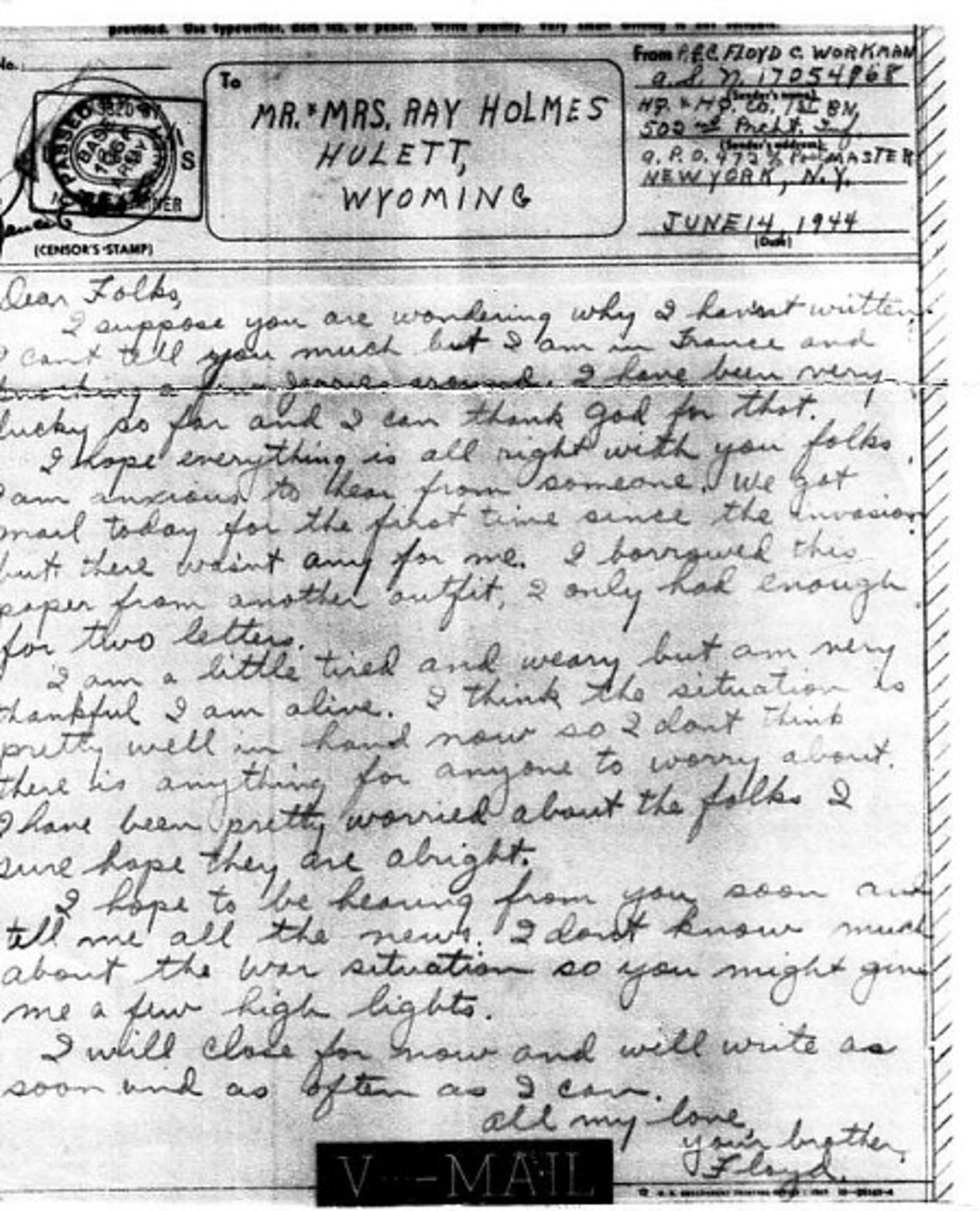 "I suppose you are wondering why I haven't written," Workman wrote in a June 14, 1944 letter to my grandparents. "I can't tell you much but I am in France."