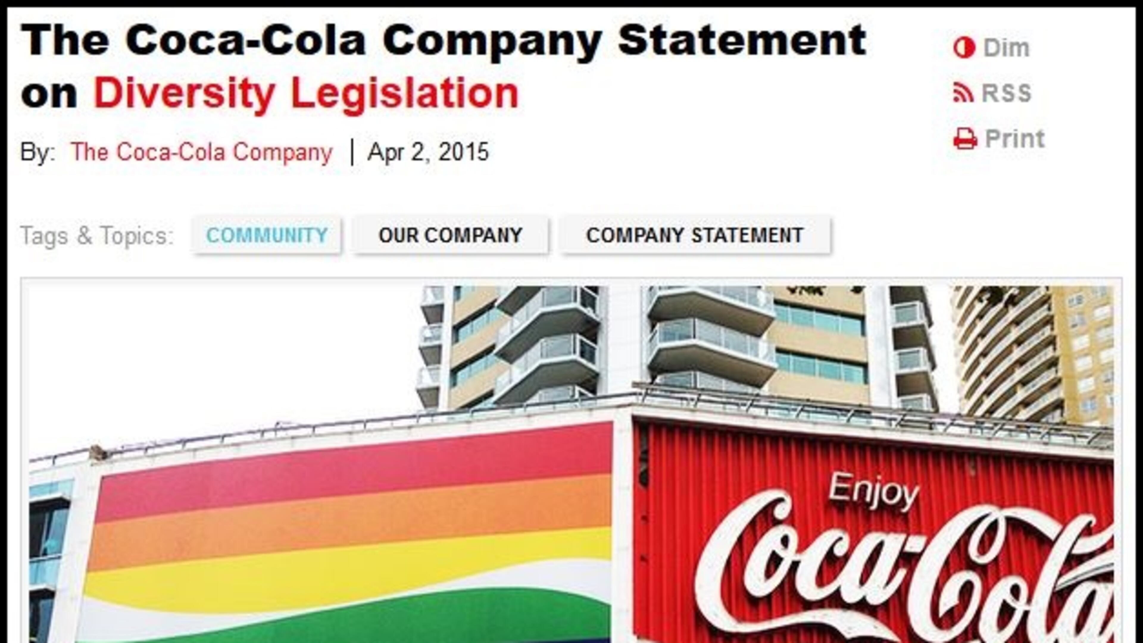 Coke, others pile on in last-day effort to bury religious liberty bill
