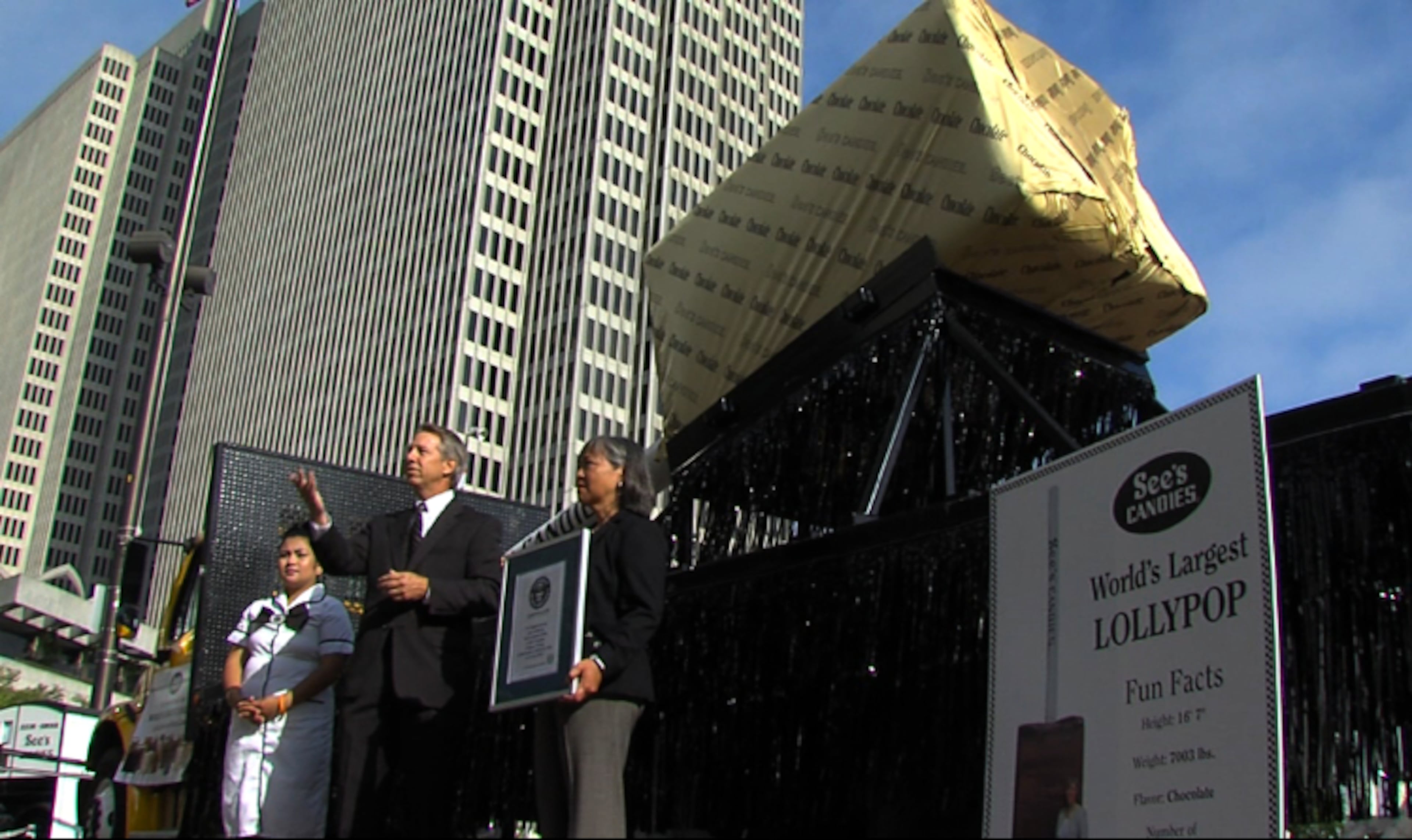 The world's largest lollypop made by See's Candies
