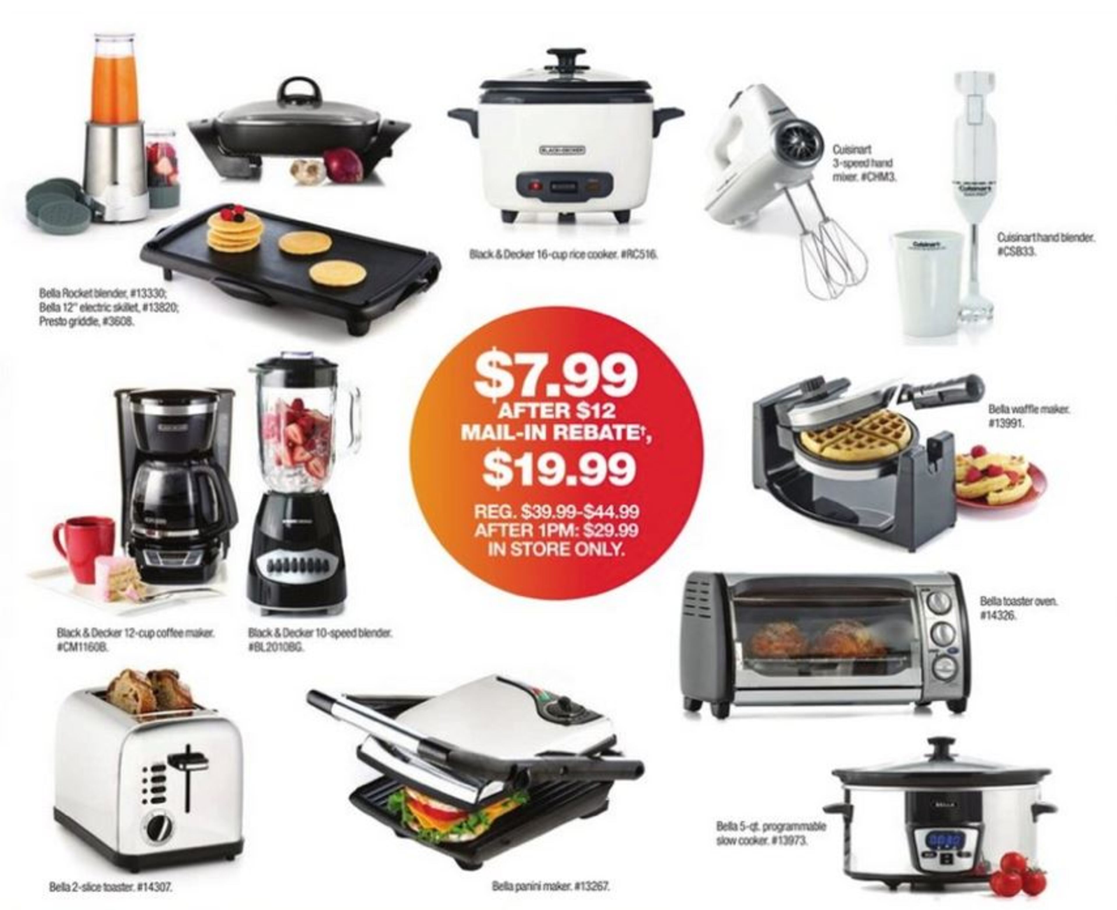 Kitchen electronics, like toaster ovens, waffle makers, cookware and blenders, will be available for up to $50 less than retail price.