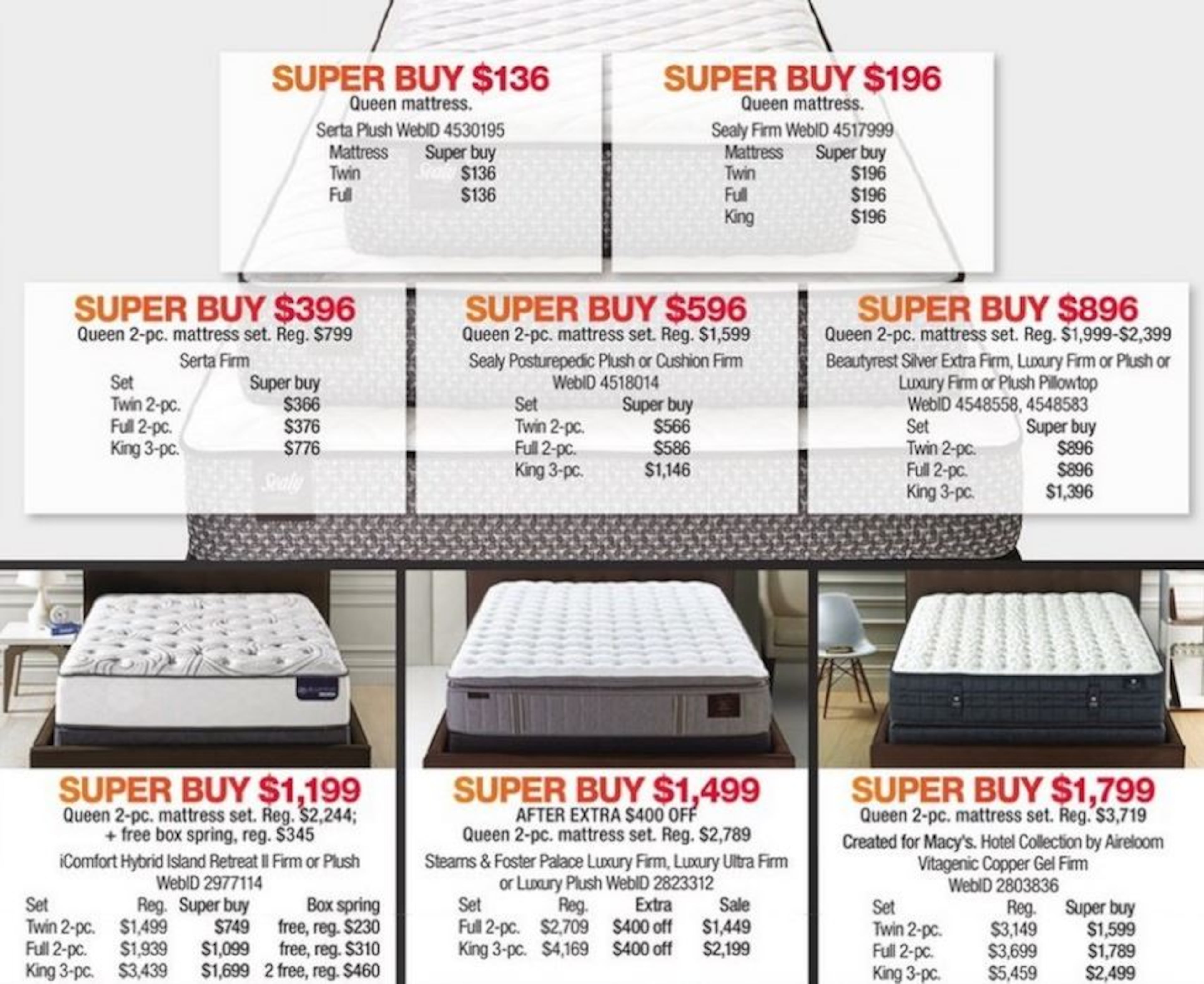 Select travel luggage and bedding will be up for grabs for up to 60 percent off, and designer apparel, such as Levi’s and Sean John, will be 50 to 60 percent off.