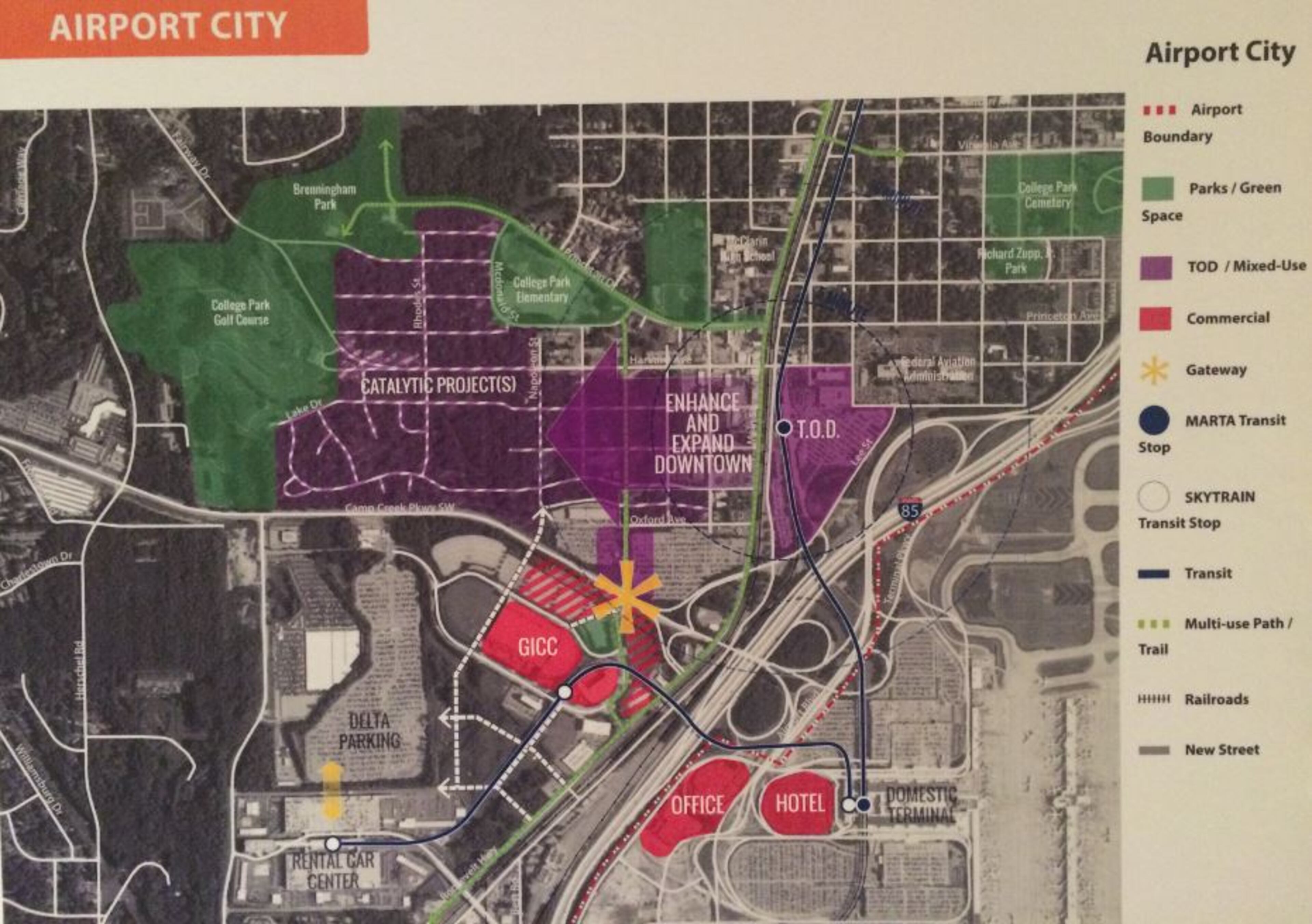 One is the "airport city," next to Hartsfield-Jackson's domestic terminal, where the airport plans to develop a hotel next to the terminal, an office development and a travel plaza with a gas station.