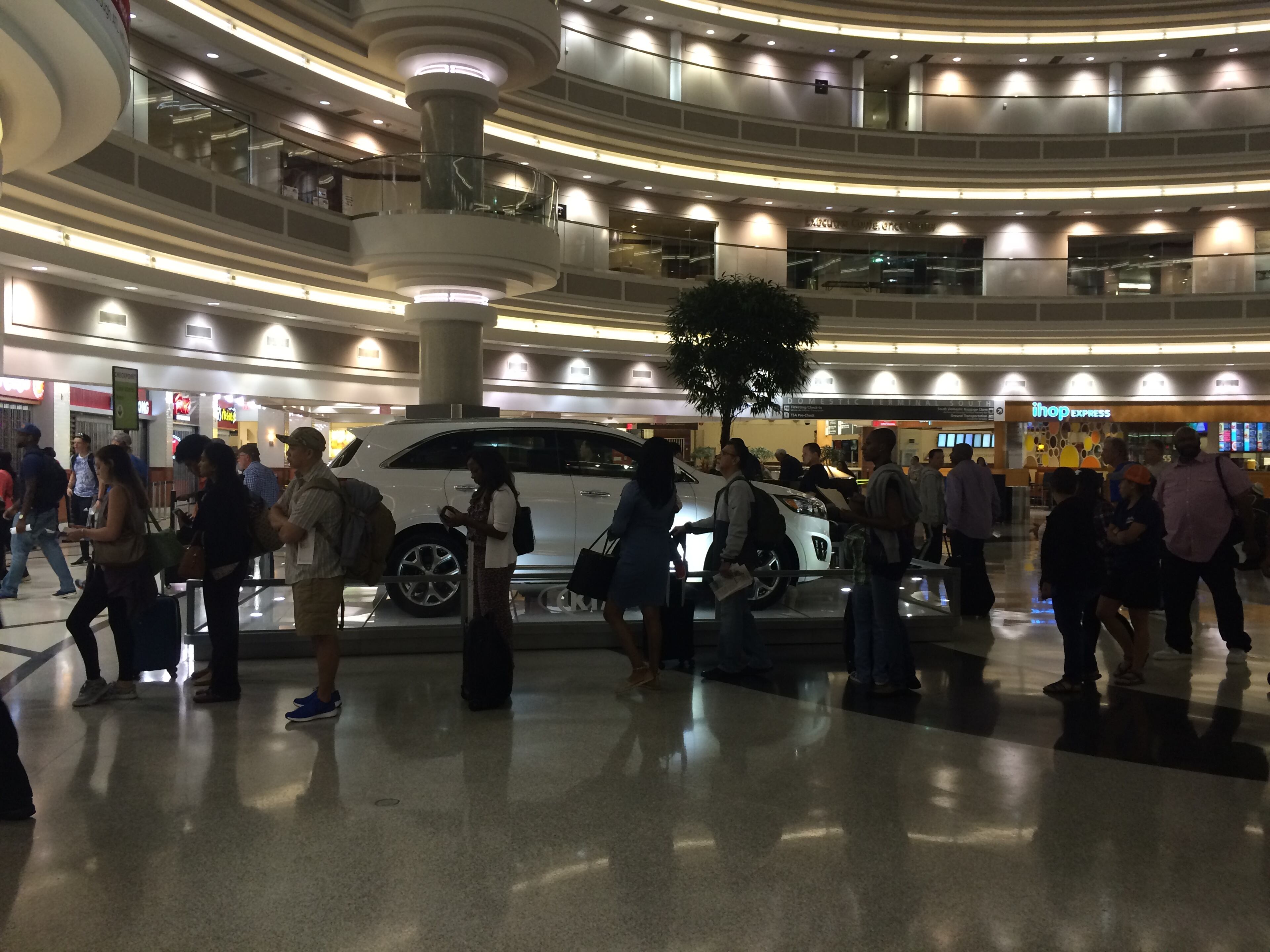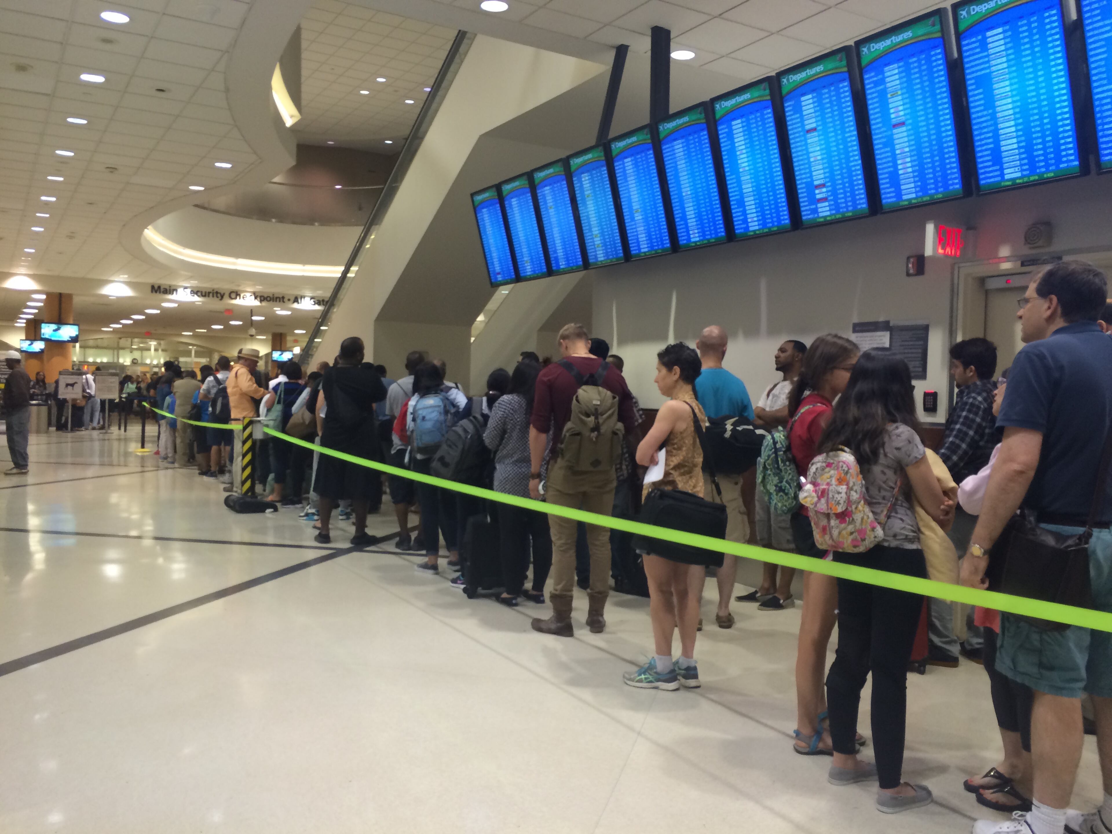 Lines at Transportation Security Administration checkpoints began stretching into the domestic terminal atrium before 5 a.m. Friday, though wait times were under 30 minutes in the early morning period.