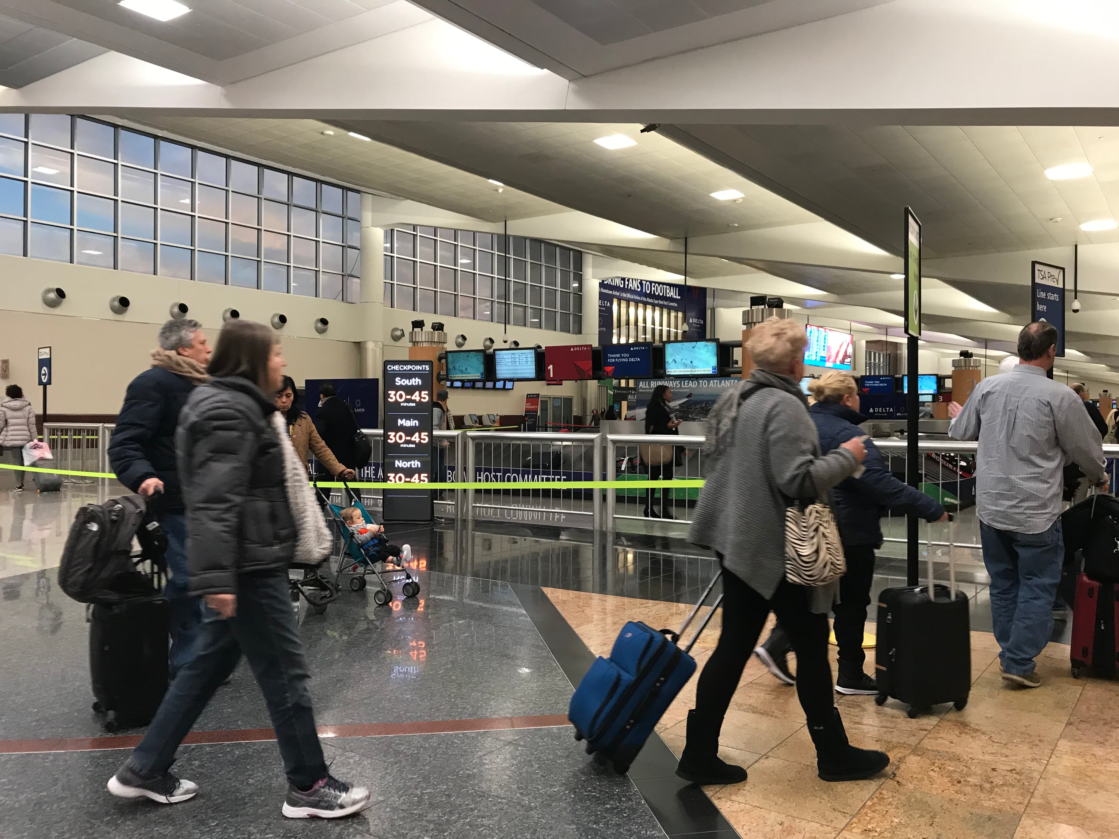 Lines were 30 to 45 minutes long at Hartsfield-Jackson International Airport early Thursday morning amid the partial federal shutdown, as travel for the busy holiday weekend begins.
