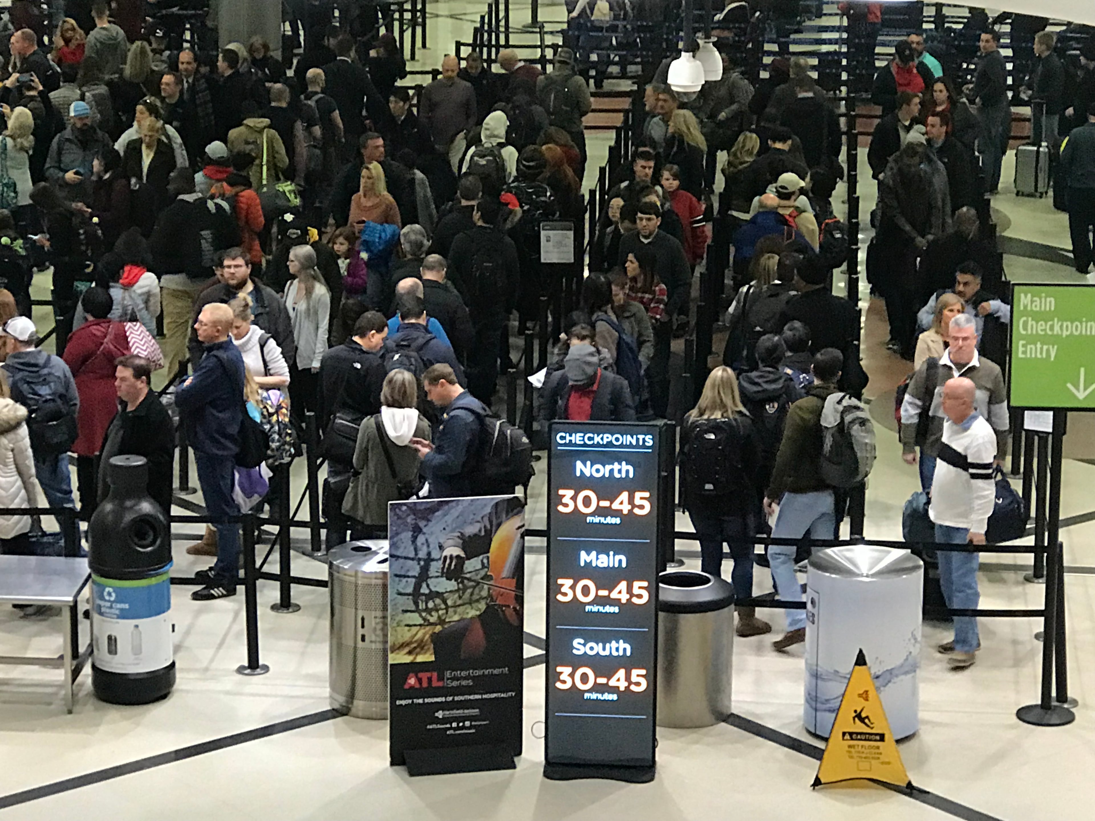 The Transportation Security Administration has had staffing shortages amid the shutdown, as some TSA officers struggle with financial difficulties. Hartsfield-Jackson general manager John Selden said 70,000 passengers are expected at security checkpoints at the Atlanta airport Thursday, and that number is expected to ramp up to 75,000 on Friday.