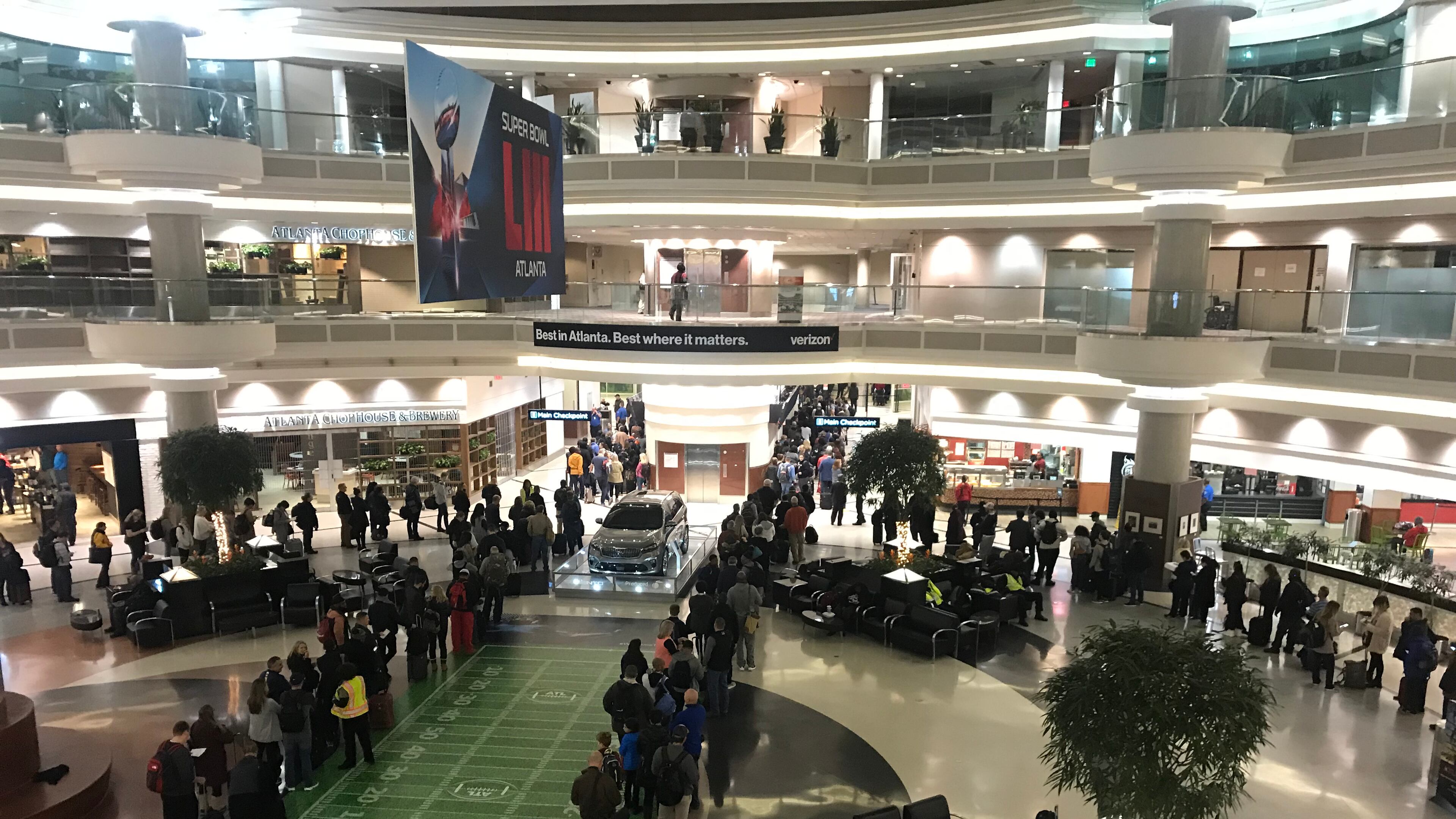 As holiday weekend travelers head to Hartsfield-Jackson International Airport for flights, lines stretched into the domestic terminal atrium early Friday during the morning rush.