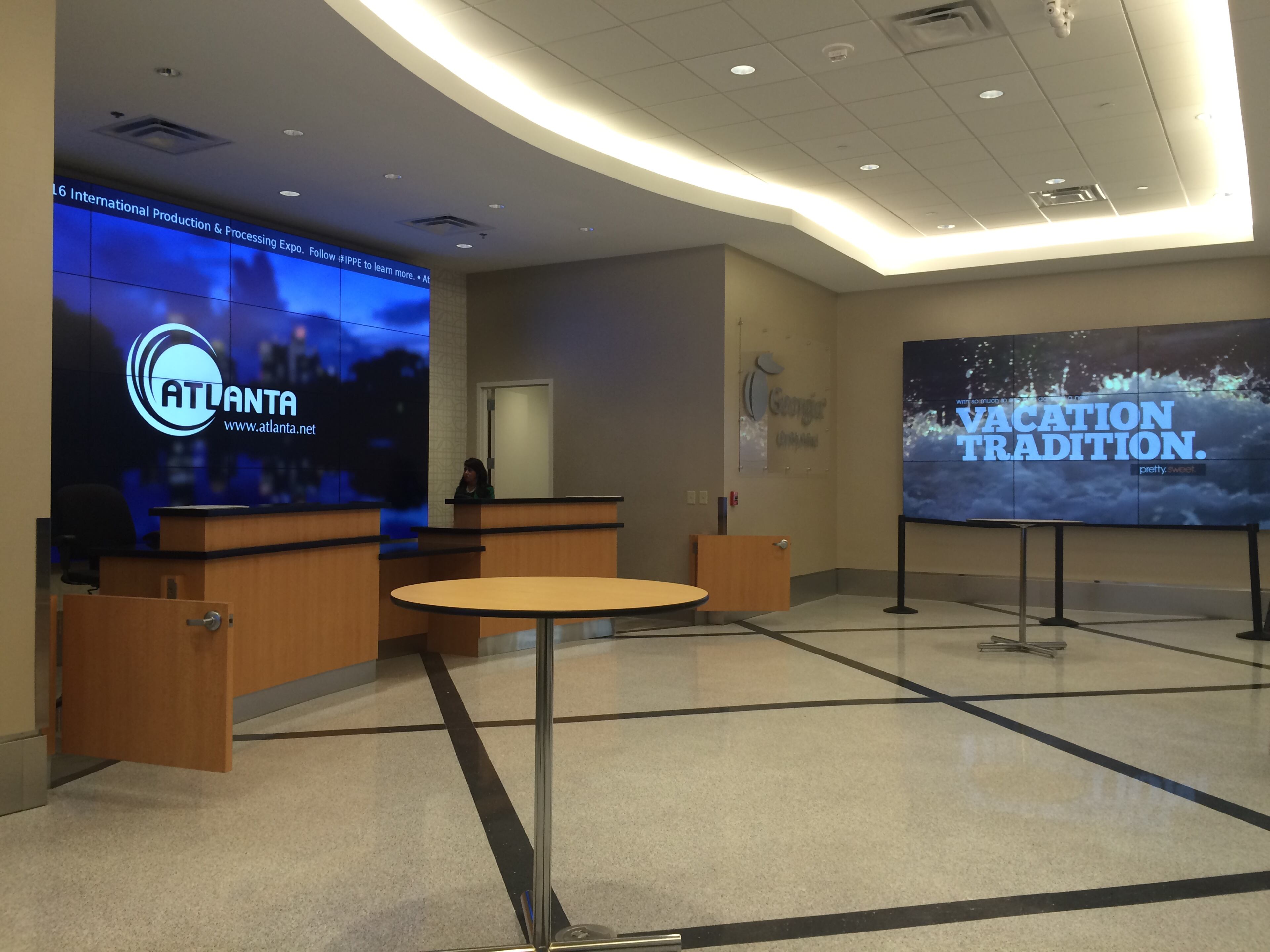 The new visitors center opened Tuesday near the meet-and-greet area for arriving passengers in the domestic terminal, featuring a glass entry and giant HD video walls showing images and videos of metro Atlanta and scenery from different regions of Georgia.