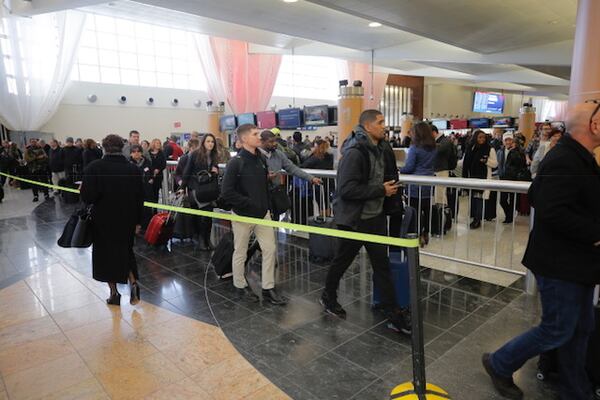 Meanwhile, flight delays earlier in the day Wednesday brought a rush of travelers through checkpoints when flight schedules picked back up.