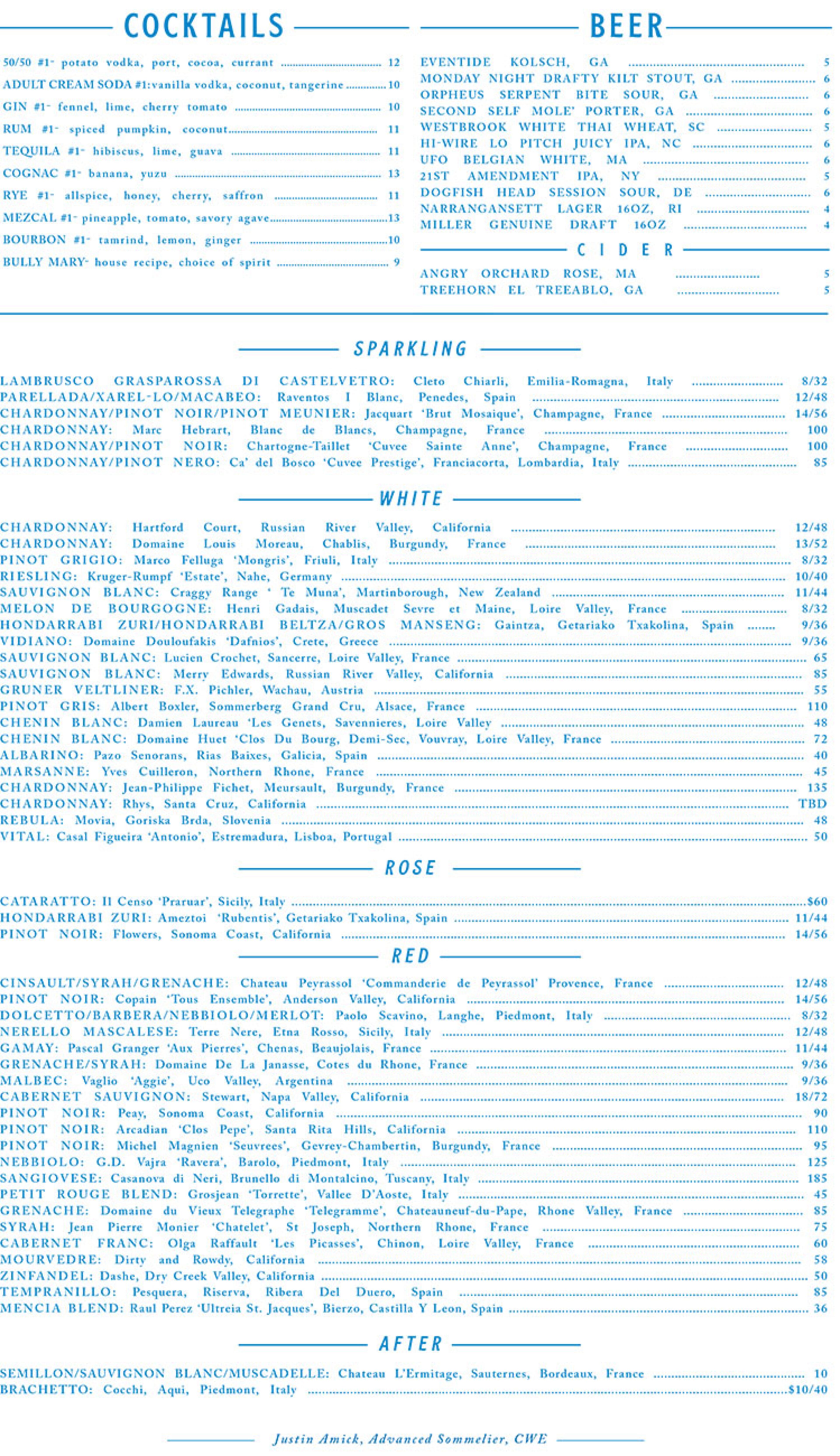 Check out the menu for Bully Boy, now open in Old Fourth Ward