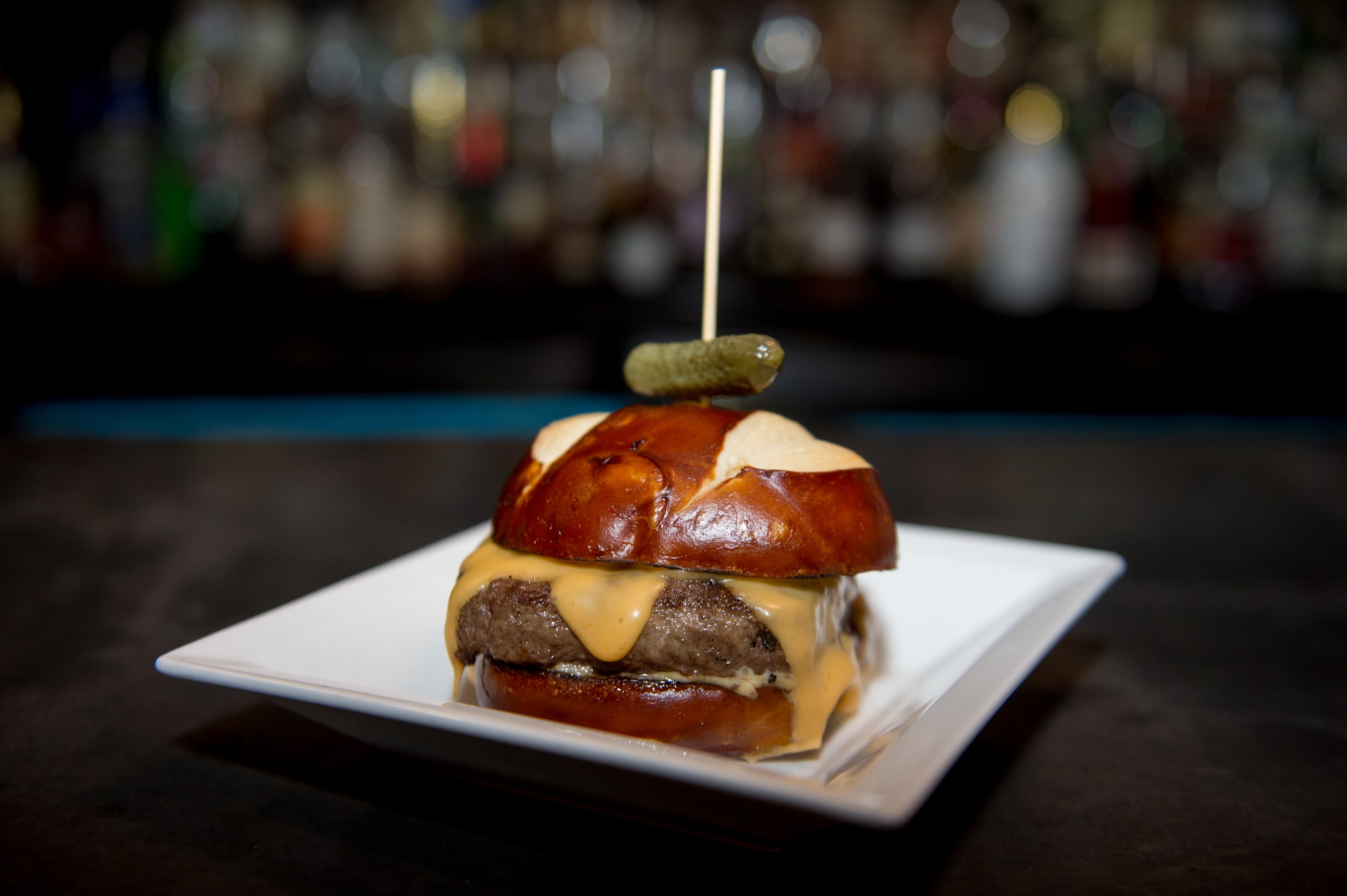 The Pretzel Burger and Creature Comforts Bibo at Three Blind Mice at 1066 Killian Hill Rd SW #101, Lilburn. 770-696-4139, tbmrestaurant.com