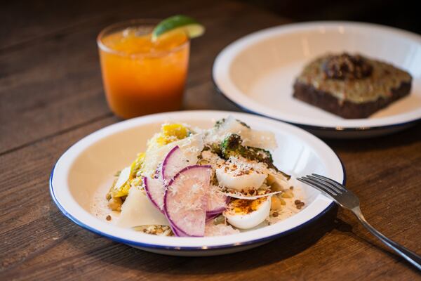 On the all-day menu, you’ll find butter-toasted grit bread with labneh and grapefruit marmalade. A crispy grain salad is loaded up with a panoply of seeds, broccoli, pickled vegetables, radishes, chickpeas, green olives, boiled egg, shaved Parmesan, walnut, and Champagne dressing.