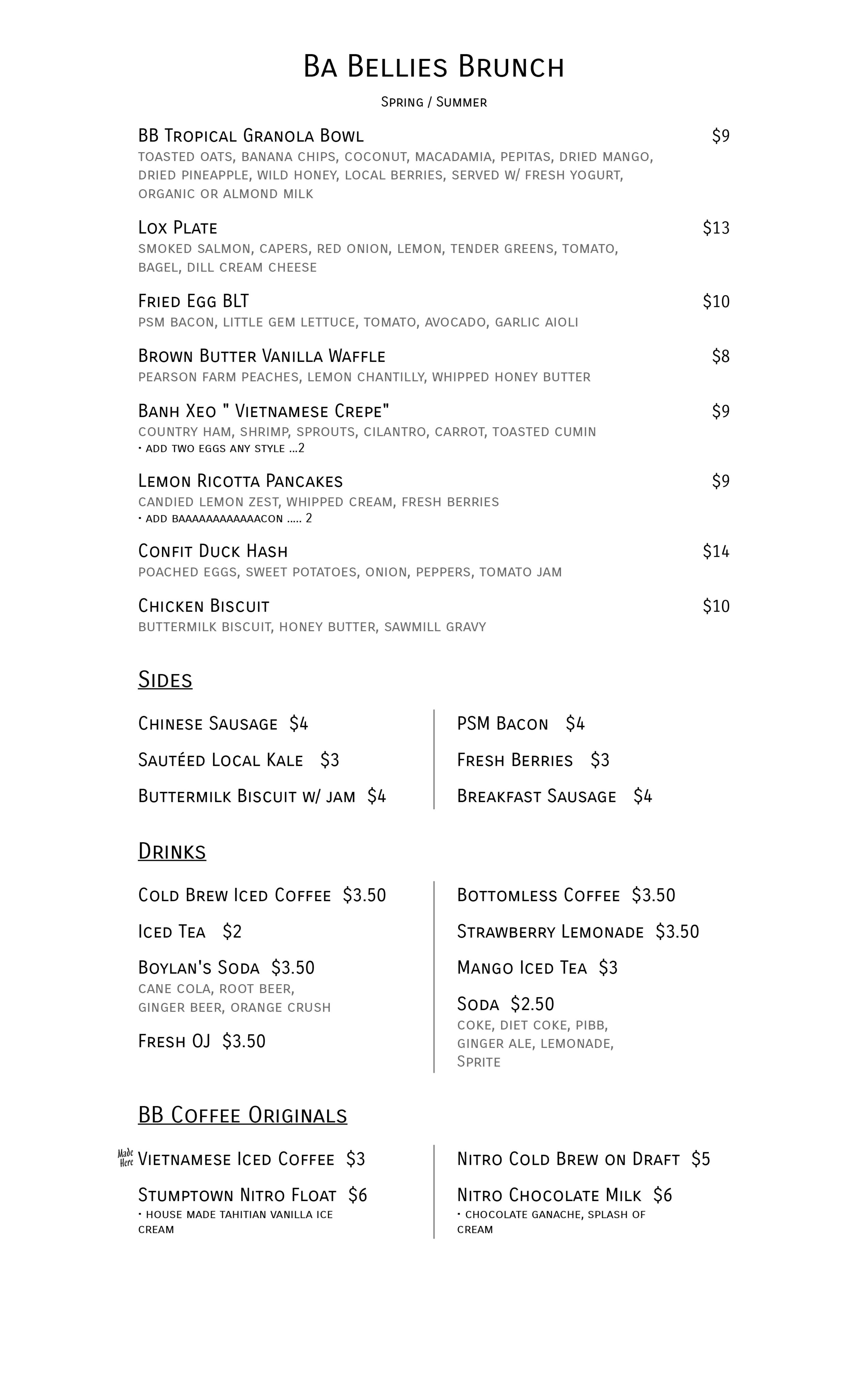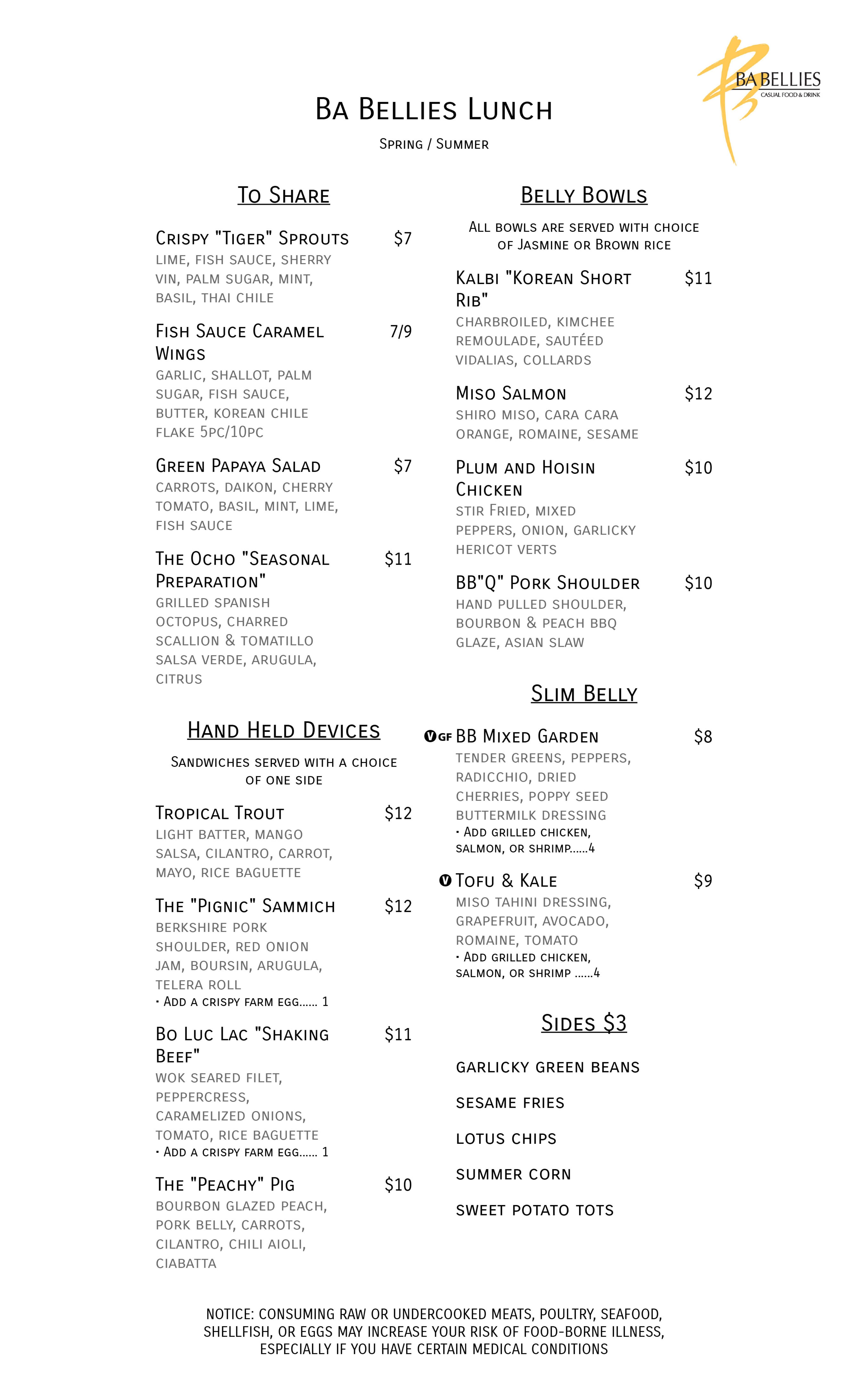 In addition to its full lunch, dinner and brunch menus, Ba Bellies will also offer a full bar including a craft beer program and house cocktails with Asian influences.