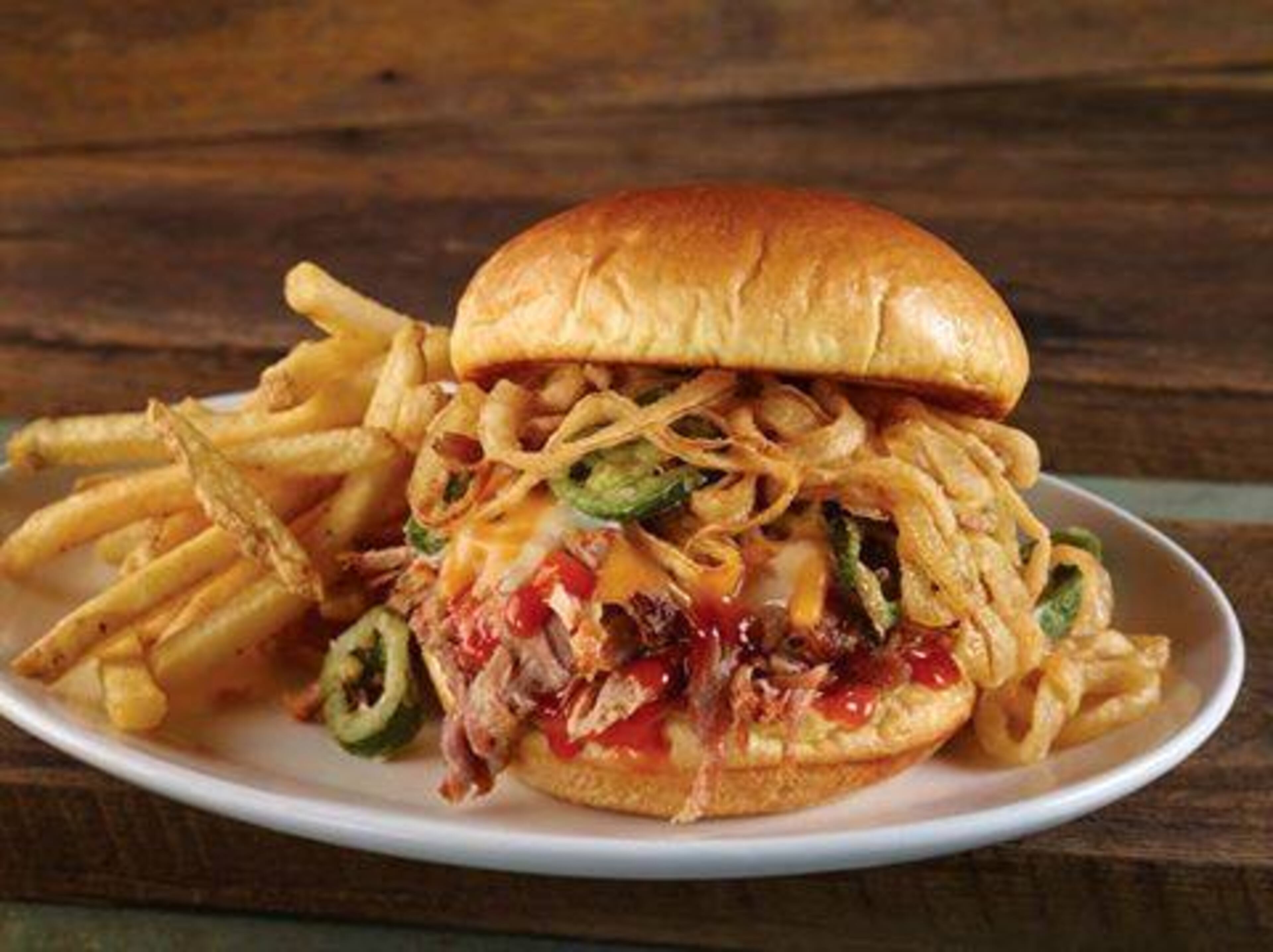 Hard Rock Cafe Atlanta: In Atlanta, you can fall in love with this chain restaurant's slow-cooked, hickory-smoked authentic Memphis pulled pork and hickory barbecue sandwich. The sandwich is piled high and served with a side of seasoned fries, cowboy beans and citrus coleslaw.