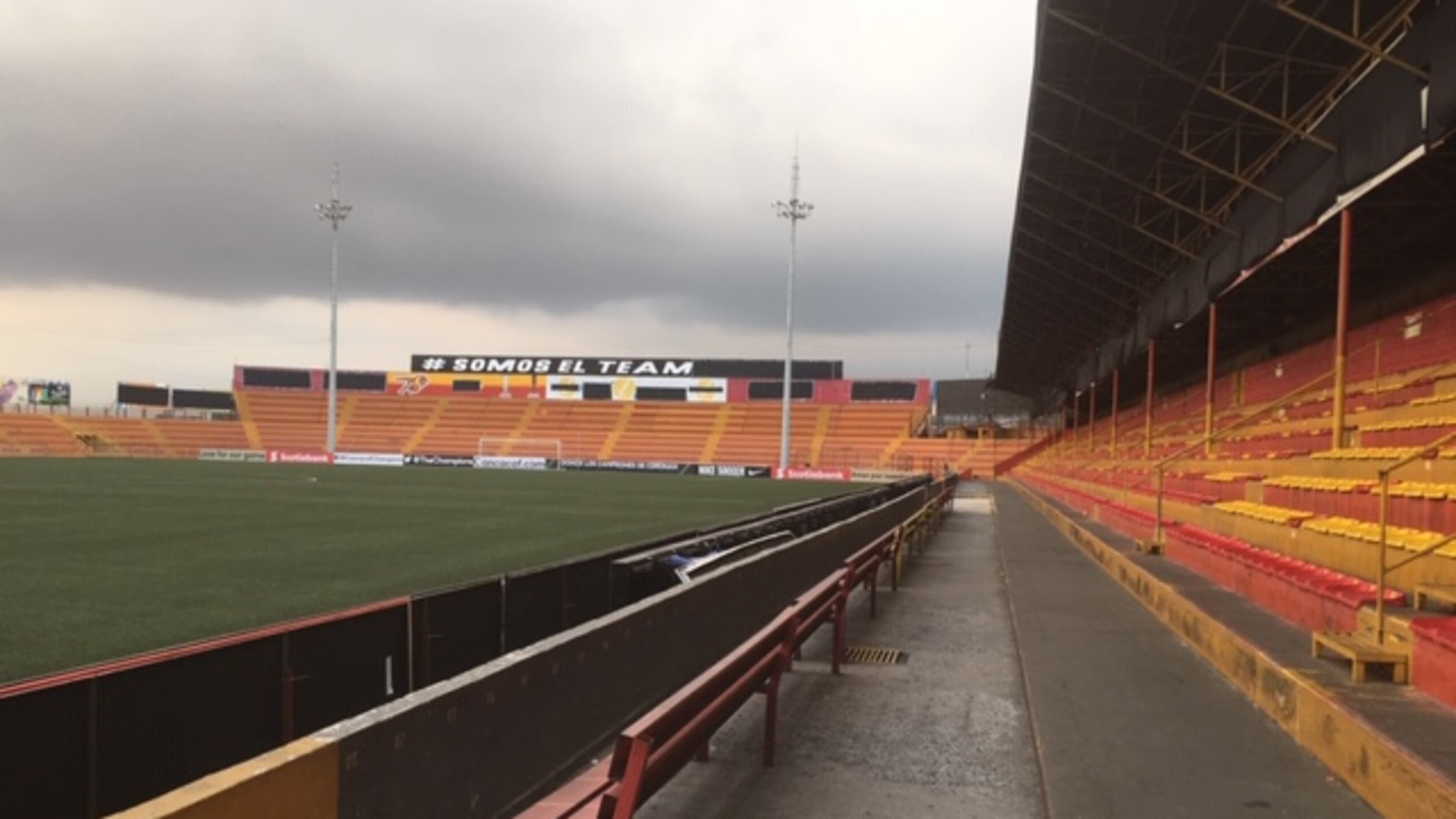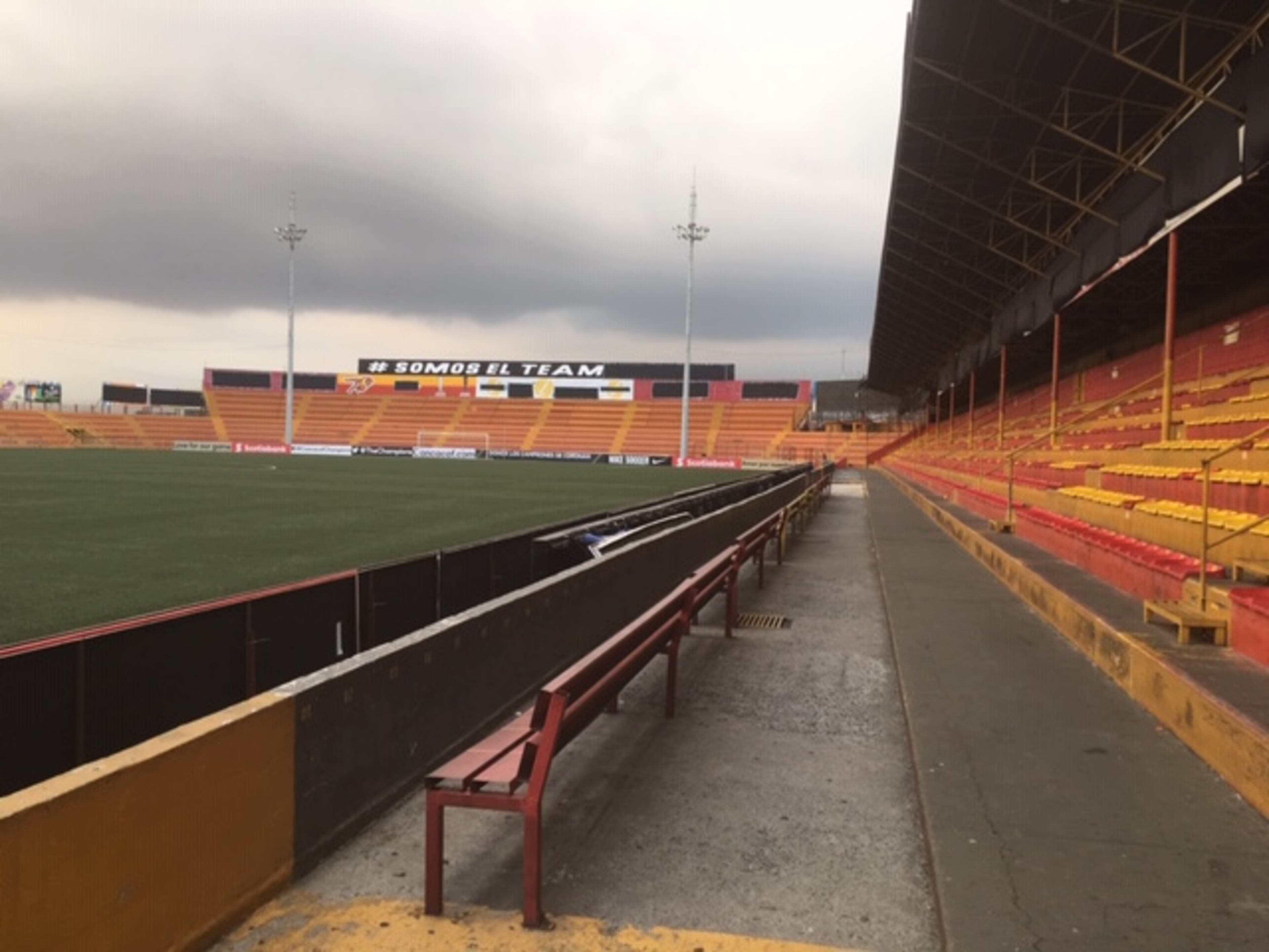 As you walk through one of the tight, short tunnels, and make a left as you walk toward the field and stands you are greeted by this sign congratulating Herediano.
