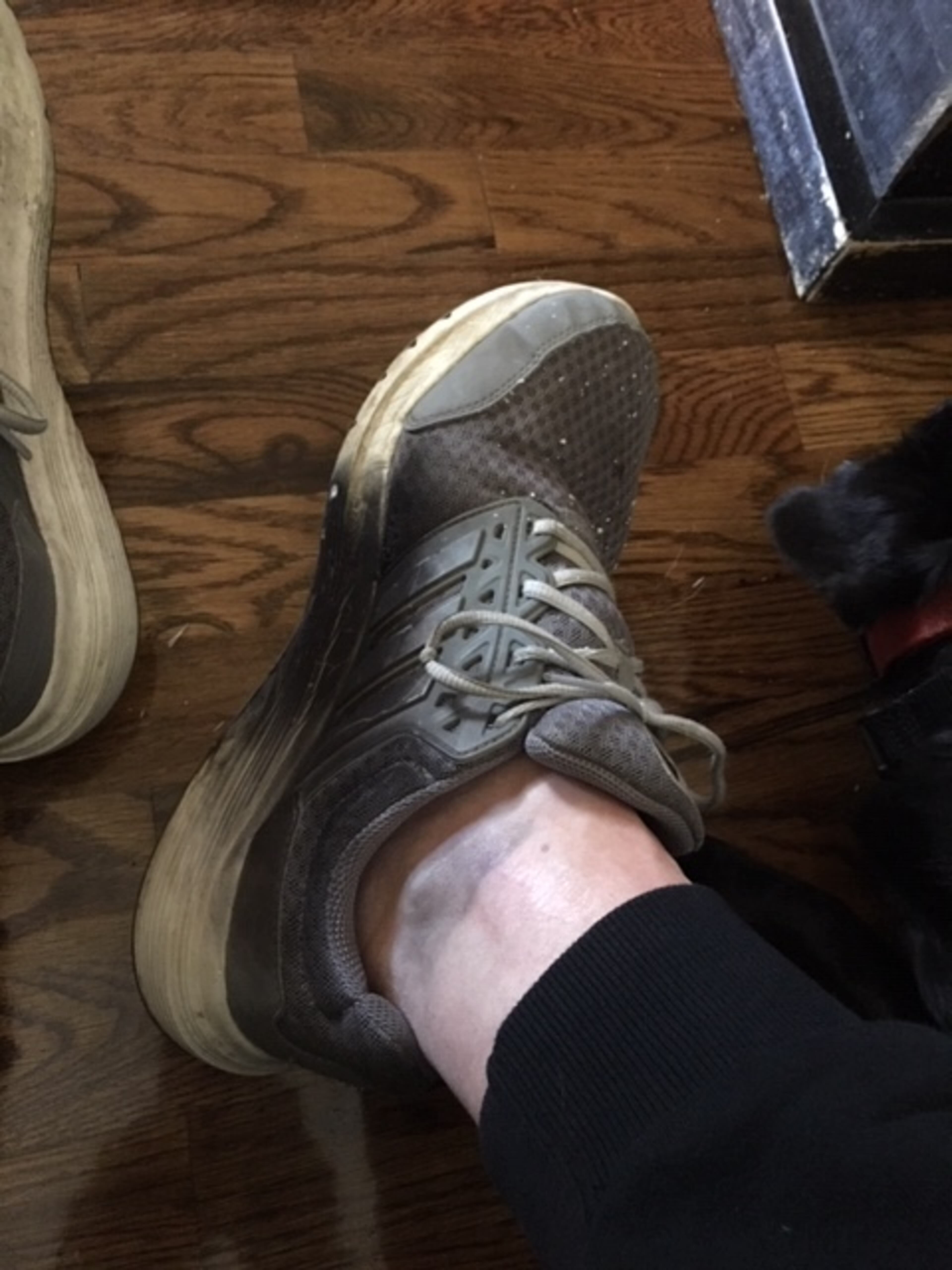 I felt a pop in my ankle. I looked down and saw the grass was on fire. I then noticed that the instep of my right tennis shoe was black and no longer gray.