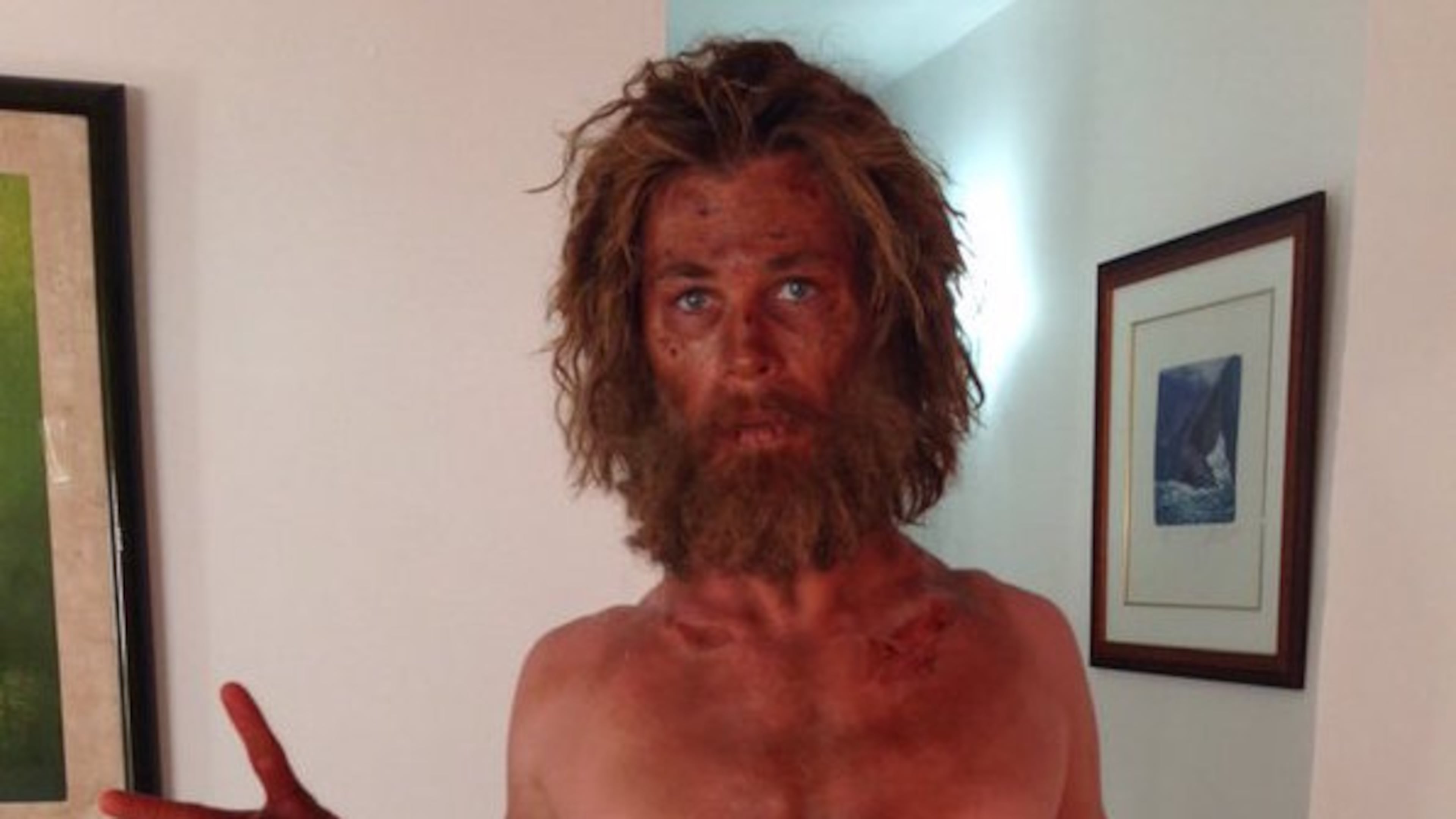 No spoilers (although "Moby Dick" was published in 1851, so..) but suffice it to say that out in middle of the ocean, when it's Whale vs. Ship the ship doesn't usually win. The Hemsworth portrays ends up spending lots of time on the open sea, hence the sunburn, without any food, hence his super skinny physique.