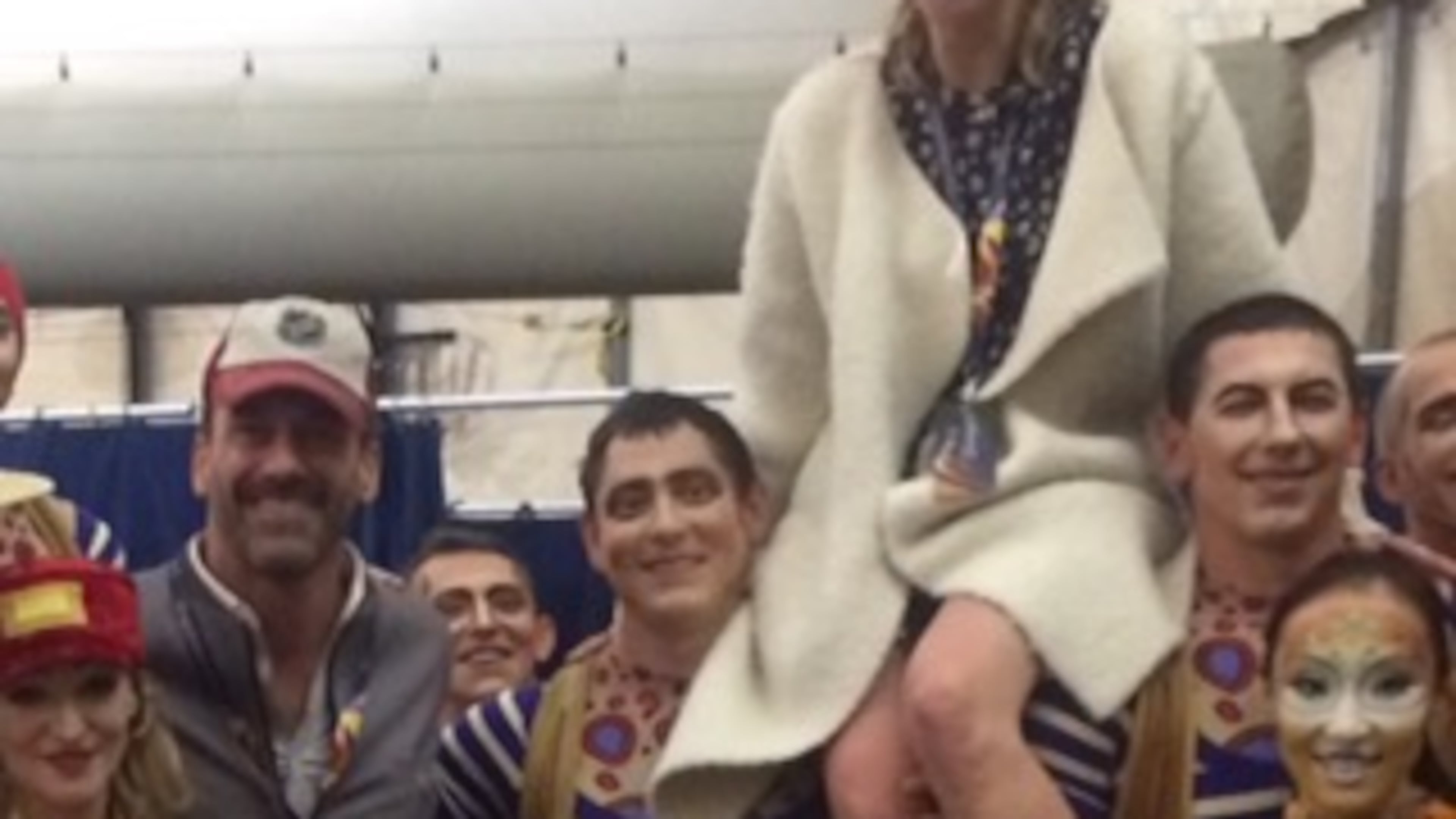 They went backstage to meet and greet afterward, and to pose for this nice photo. James really got into the spirit of things, perching atop two of the performers' shoulders!