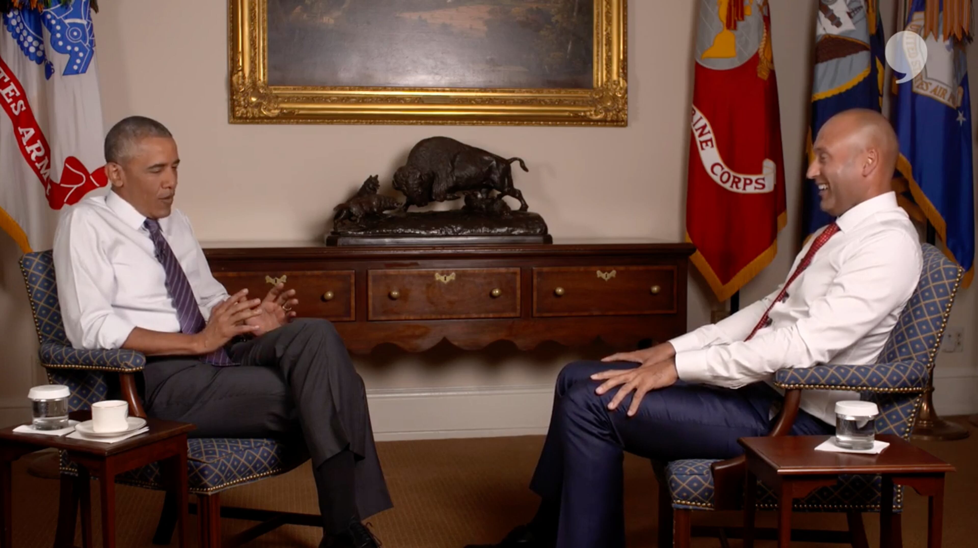 The full interview appears June 22 at The Players' Tribune, a platform for sports stars to share their stories. Jeter is the founding publisher. Here's a peek at his sit-down with Obama: