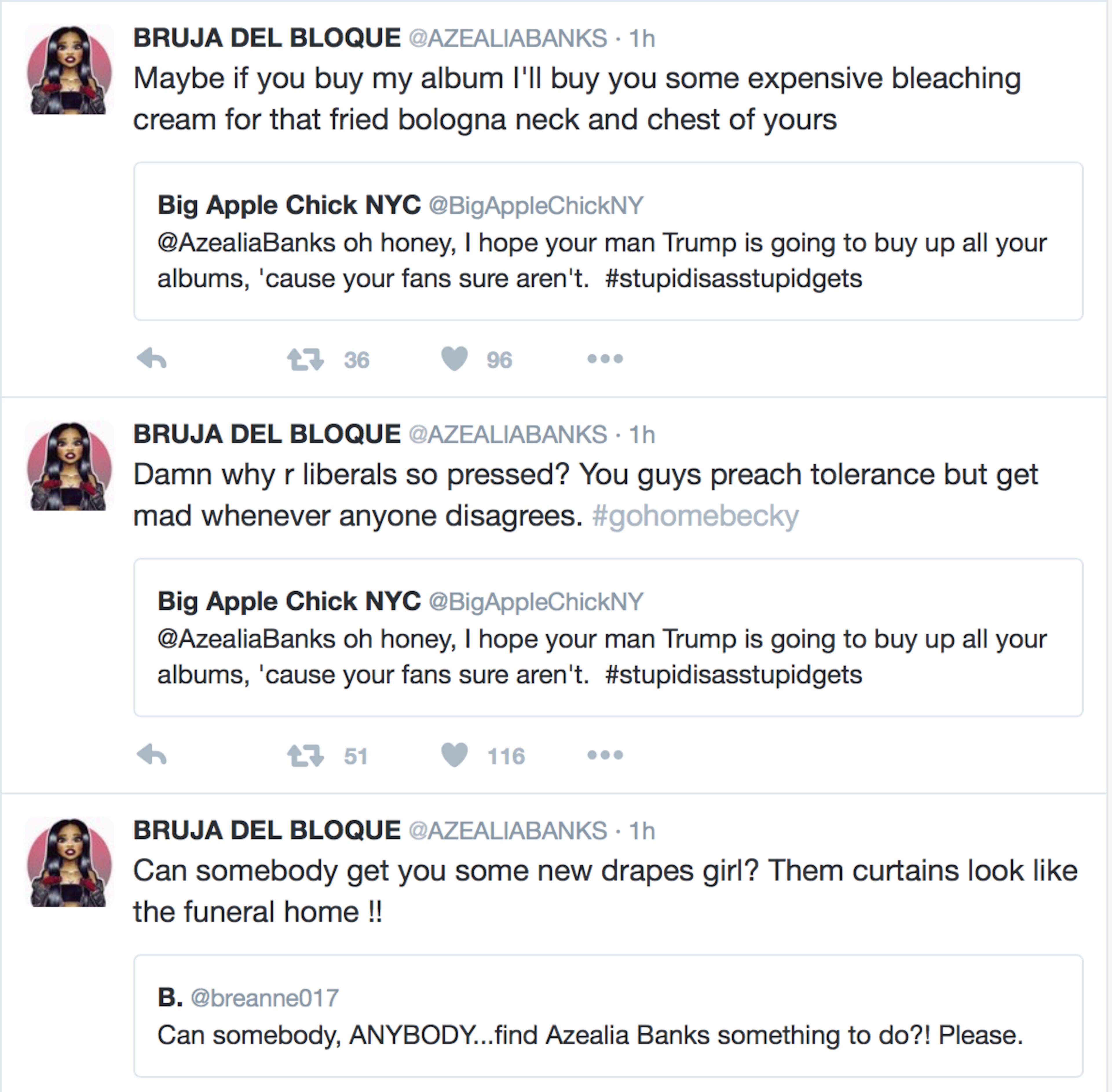 In addition to her pro-Trump tweets, Banks went on quite the Twitter tirade, blasting former One Direction singer Zayn Malik in a series of posts many found offensive.