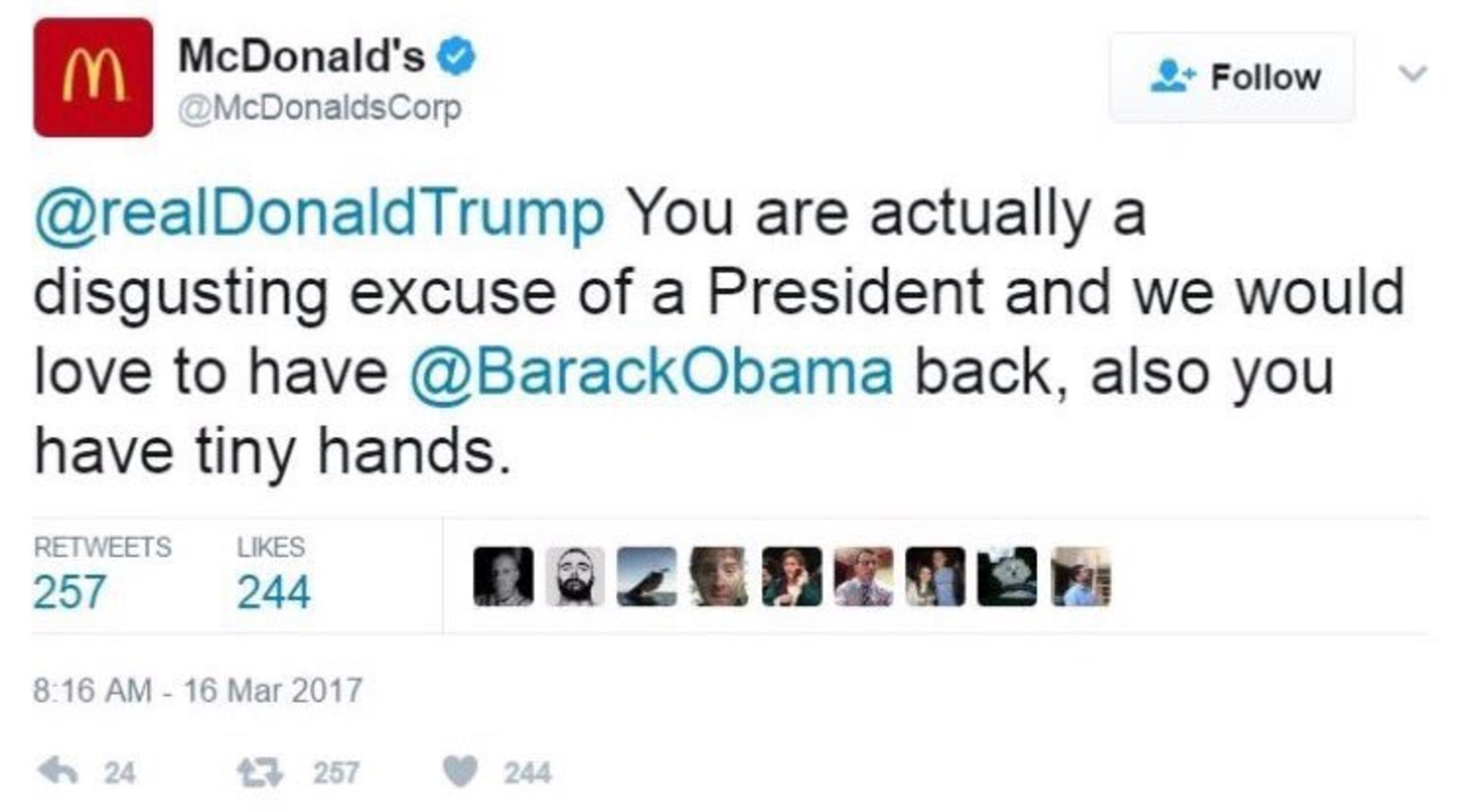 Someone hacked McDonald's Twitter to insult Donald Trump