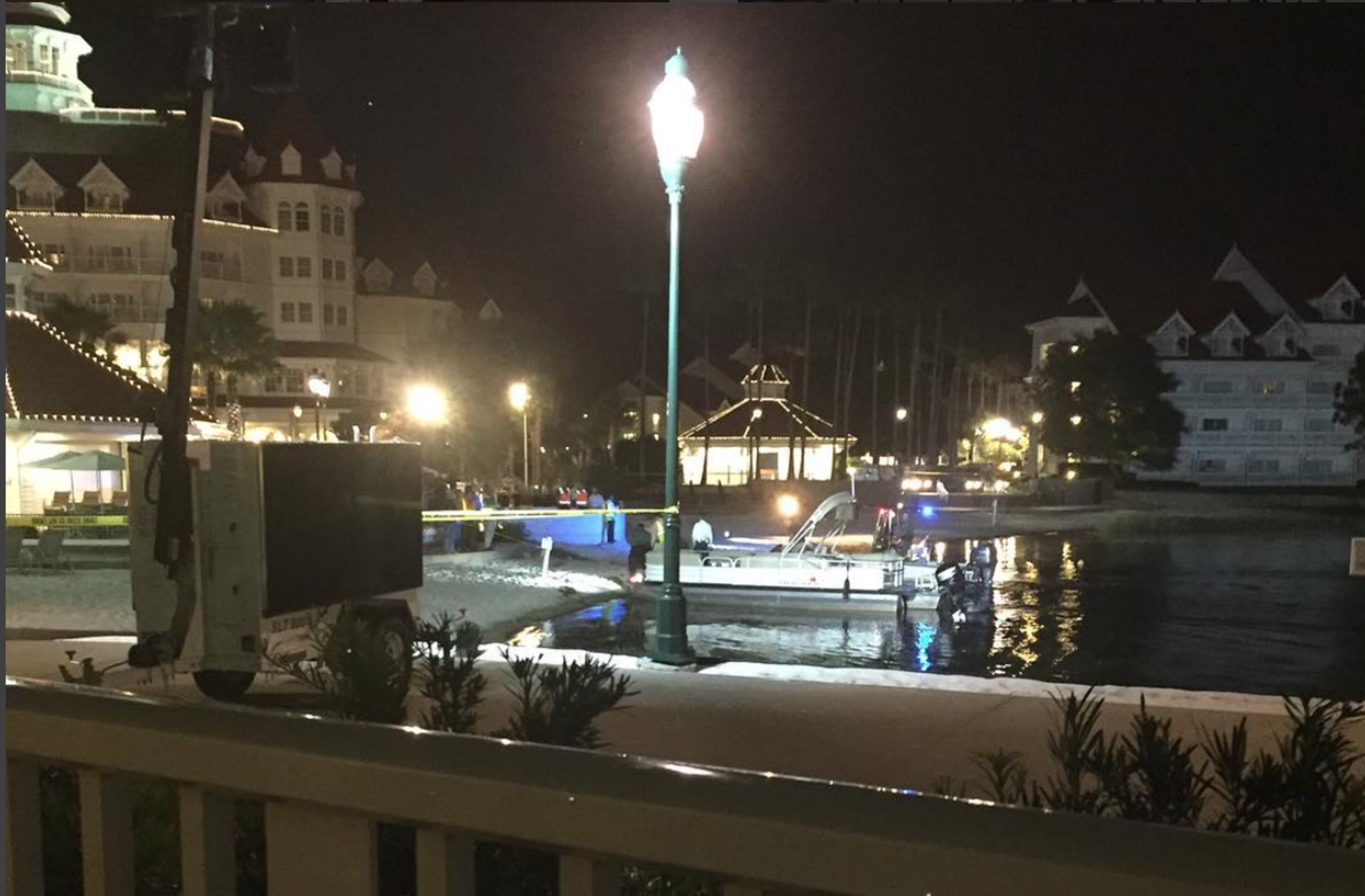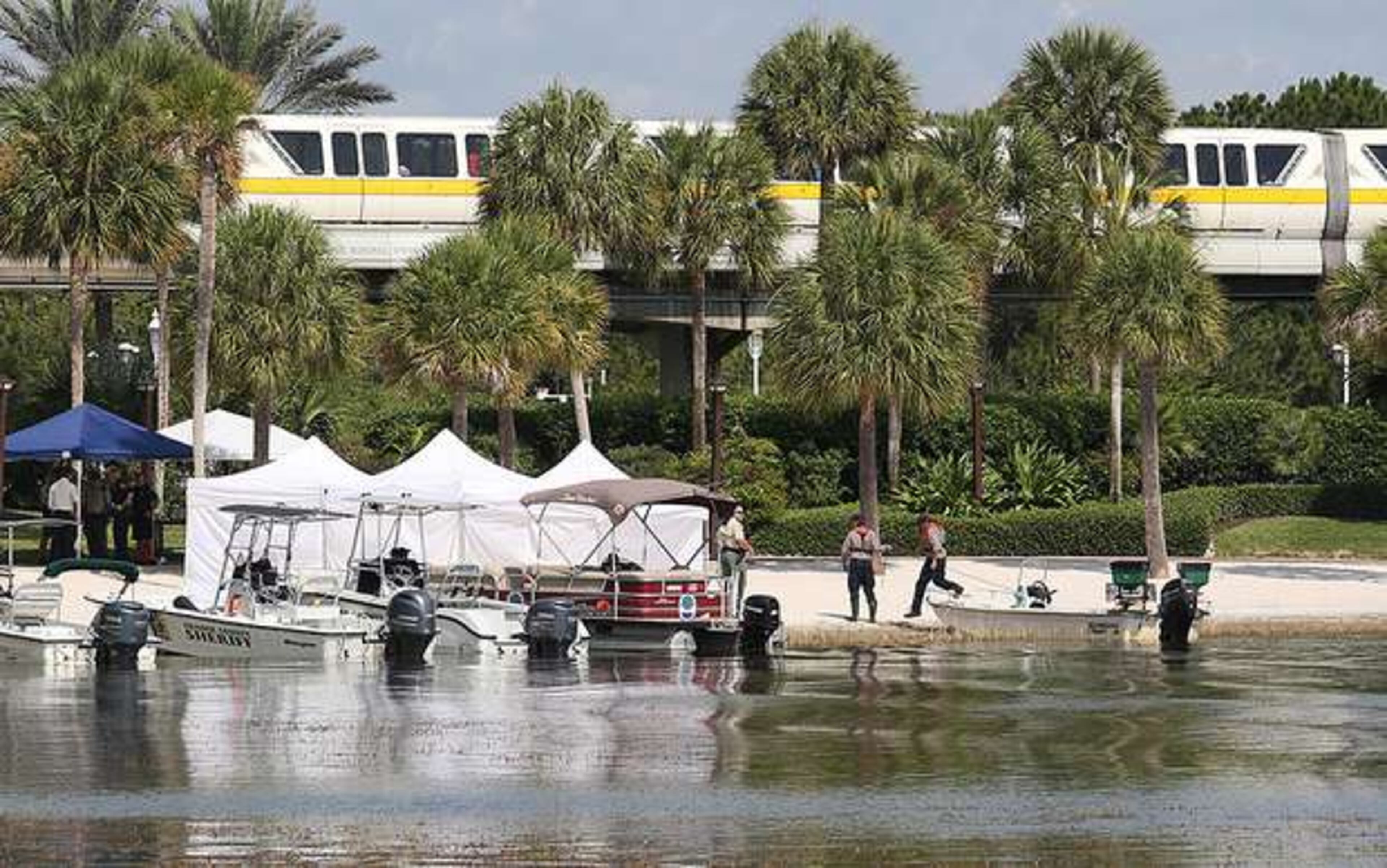 Inside the elegant resort on Wednesday, families were enjoying time with Disney characters while outside, law enforcement officers searched via boat and helicopter.