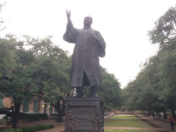 The statues had been in the heart of campus in the shadow of the famous bell tower. A statue of the Rev. Martin Luther King Jr. stands near where the relocated statues had been.