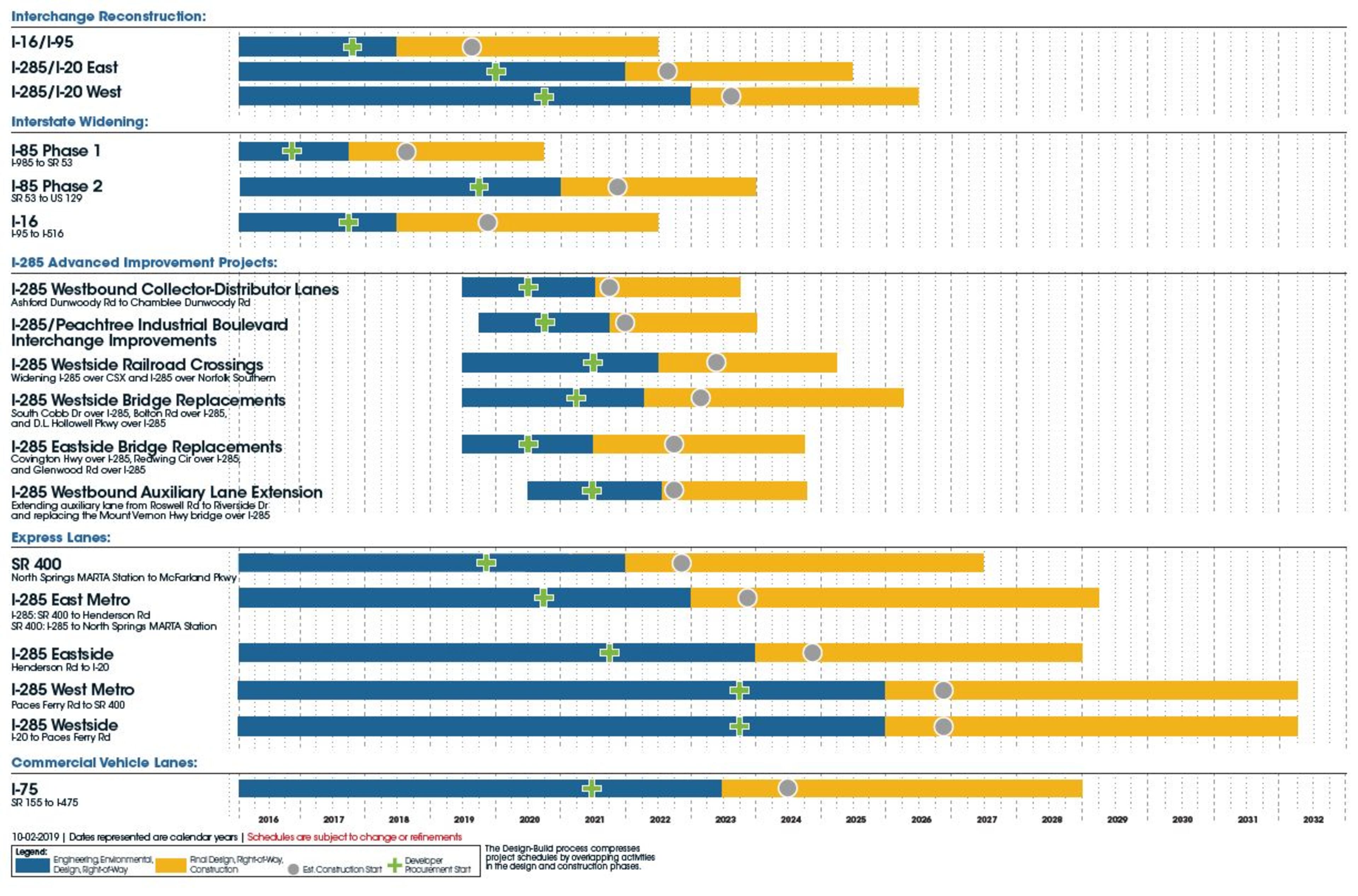 It's a major reshuffling of the timeline for the 10-year road-building program unveiled by then-Gov. Nathan Deal in 2016. GDOT cited numerous reasons for the changes, including increased freight traffic out of Savannah and a desire to break up the "top end" I-285 toll lanes into smaller projects to encourage more construction companies to bid on the work.