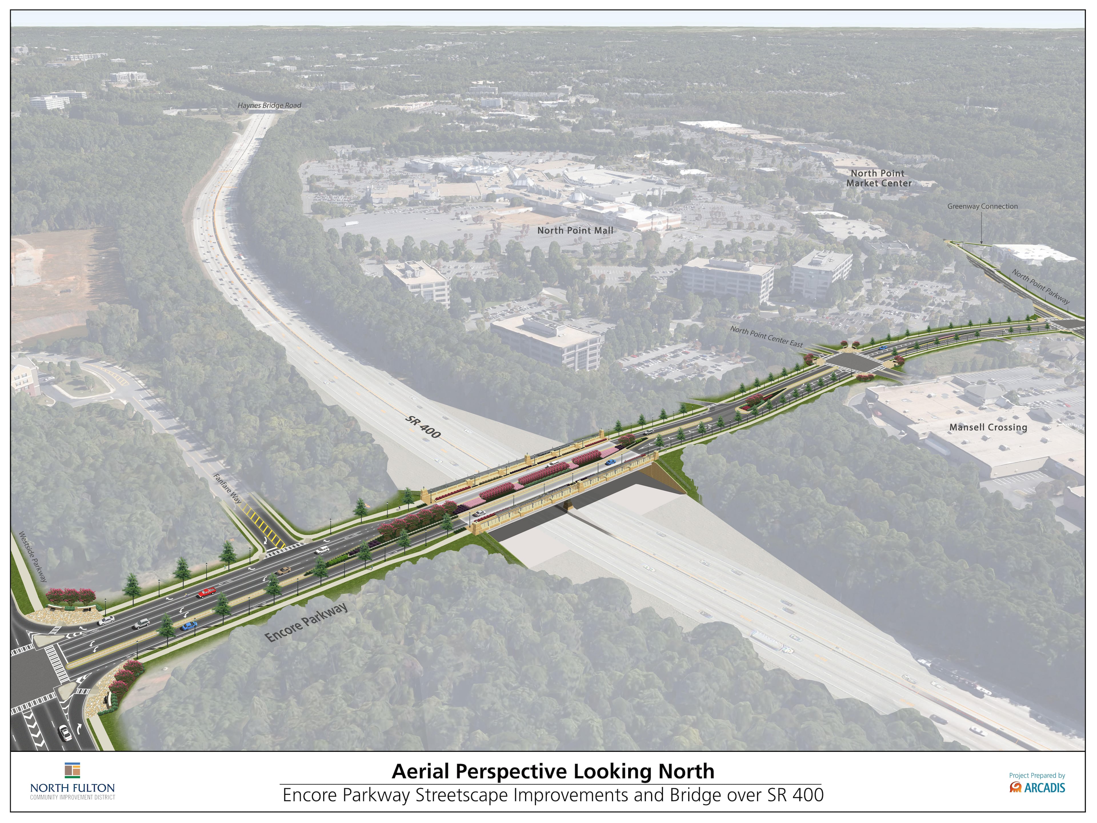 A new sidewalk to be added along the east side of North Point Parkway will also connect the bike and pedestrian facilities on the bridge to the existing Big Creek Greenway trail and parking area. The Big Creek Greenway is a multi-use path that winds through Roswell, Alpharetta and South Forsyth County.