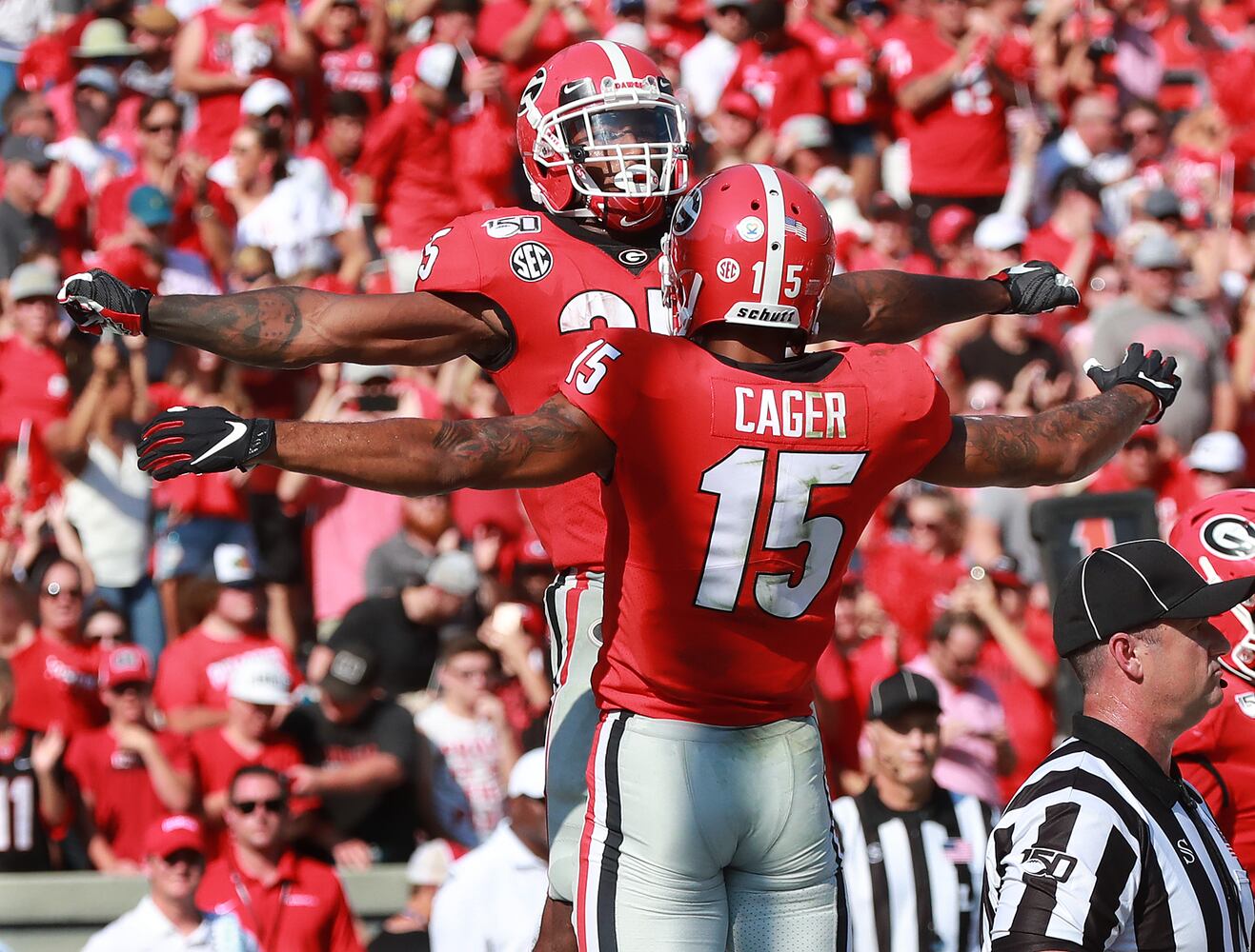 “To see him score and see him lead the team in rushing, I was happy for him,” running back D’Andre Swift said. Swift scored twice and added 67 yards to the Bulldogs’ 269 rushing yards.