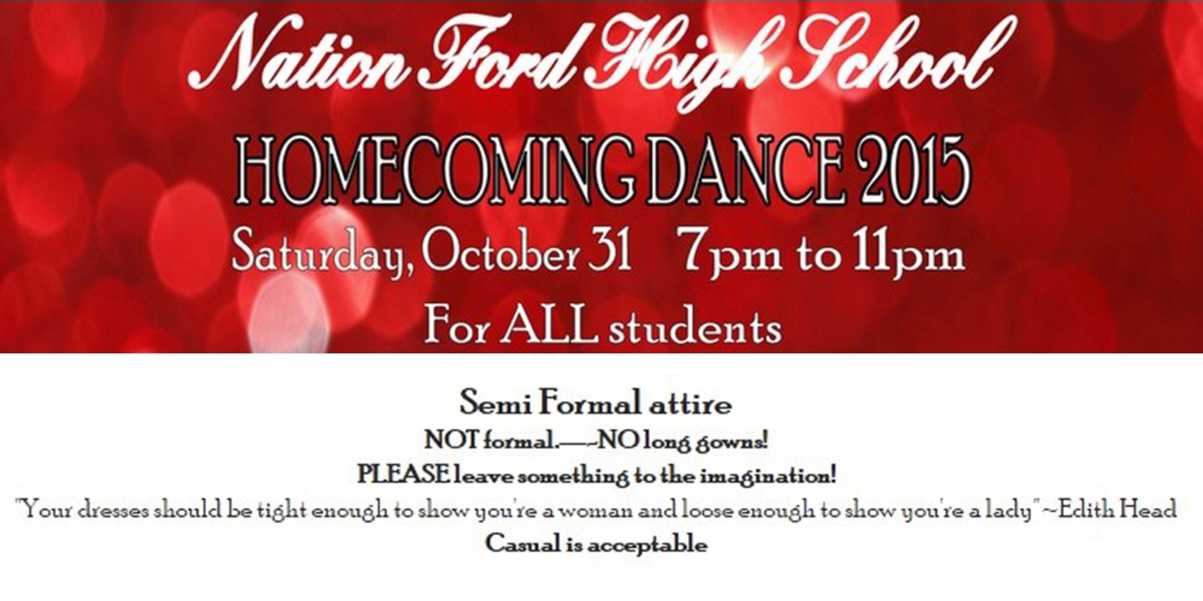 This is a homecoming poster designed to deliver a witty message about appropriate dance attire. No matter intent, the implied message – that girls need to cover up for fear of discombobulating their male classmates – is wrong. Schools have to stop holding girls responsible for what boys do or think.