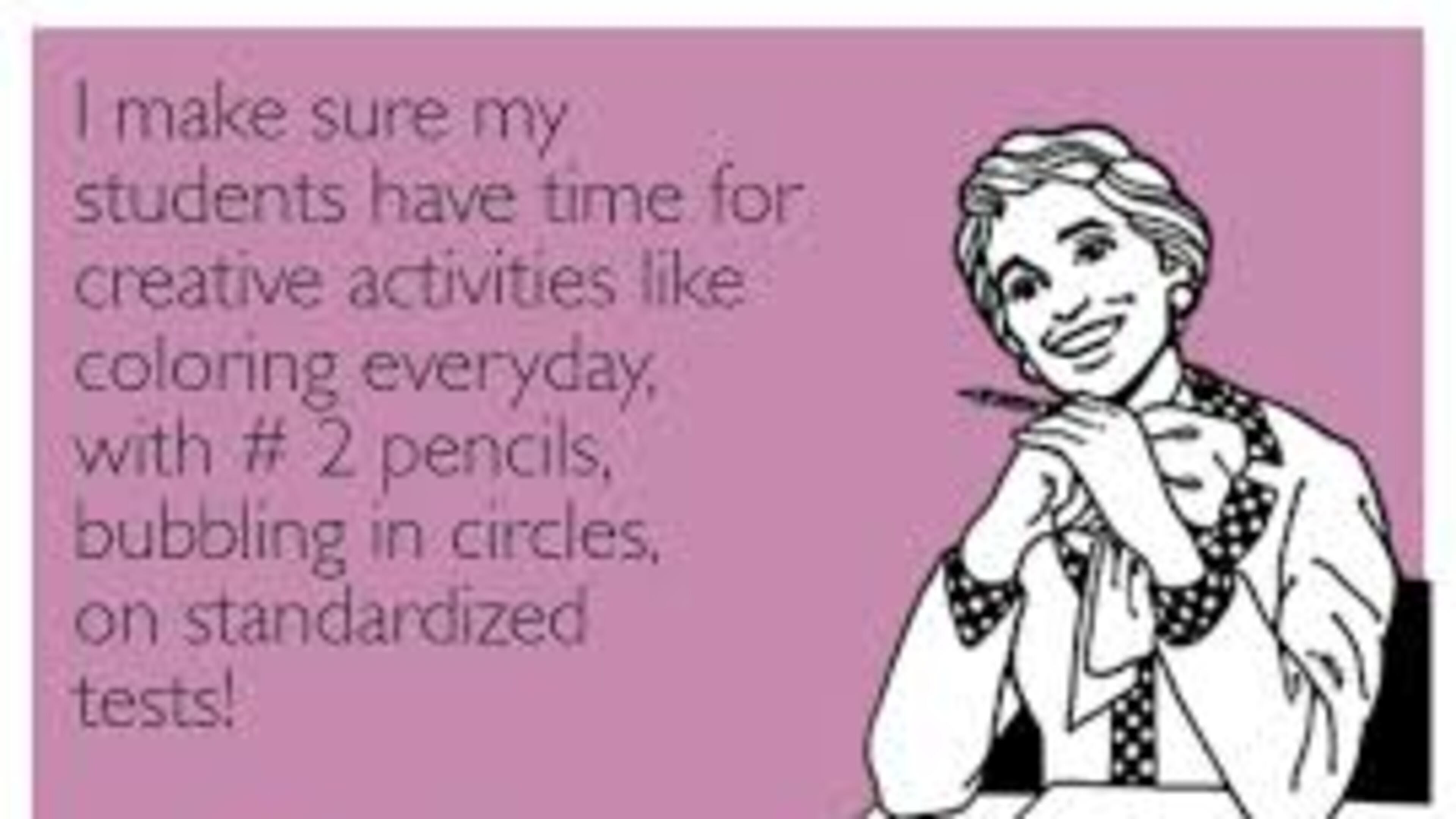 Then the state said, "Now, we're going to evaluate and assess that you’ve been doing all of these things. To do that, we need your students to have silent engagement for over 12 hours crammed into a five-day period. They cannot talk; it may invalidate the testing. They cannot move around more than 10 minutes during an hour-and-twenty-minute testing session. It may invalidate the testing. The testing will be standardized, regardless of where your students were when they came to you. They are going to have to bubble their answers. We hope they’ve had some practice with that."