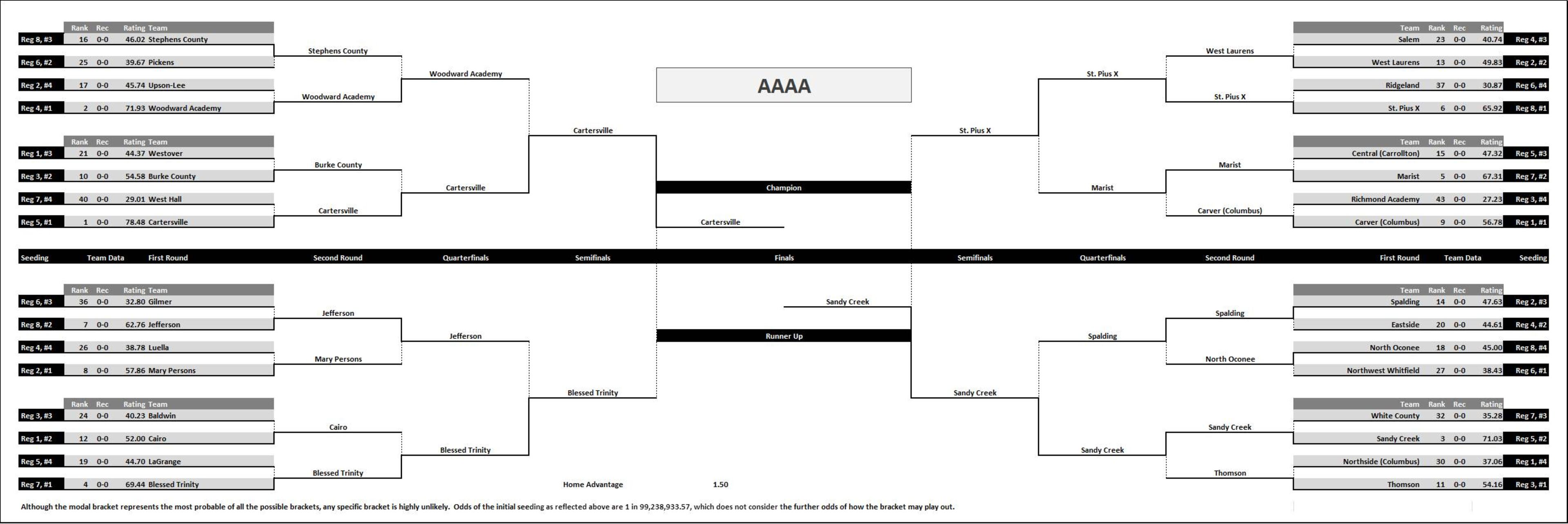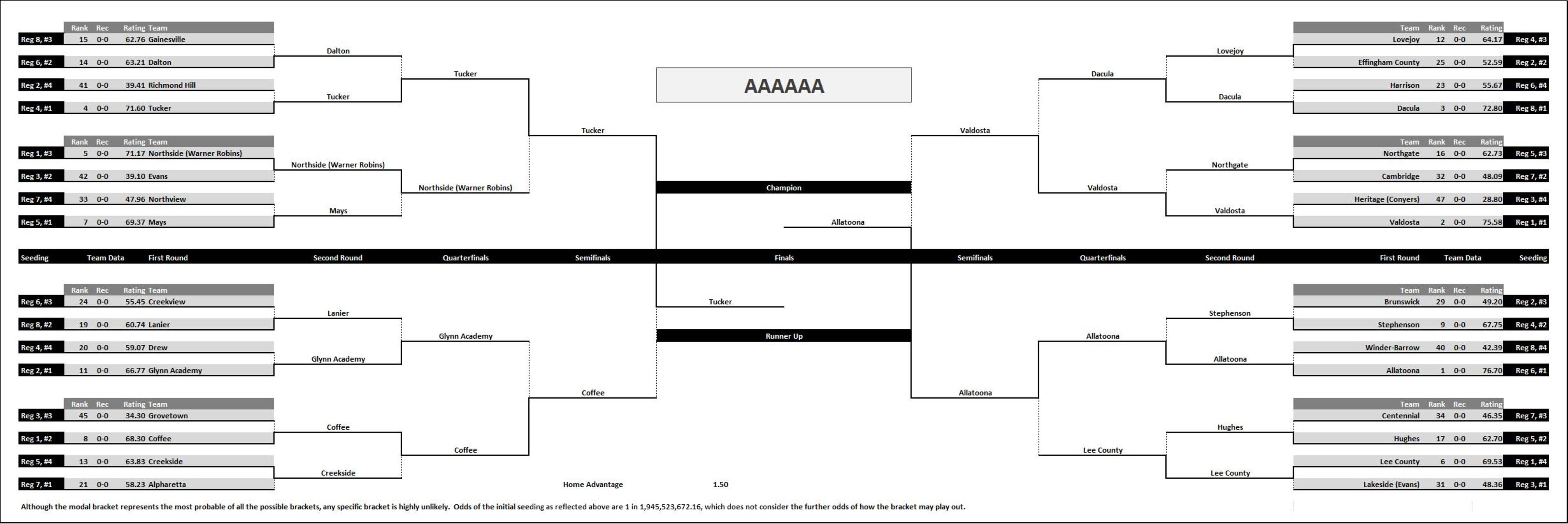 Although regions may use different criteria, in the simulation all standings were determined by 1) region record, 2) head to head, 3) classification record, and 4) random tie breaker.
