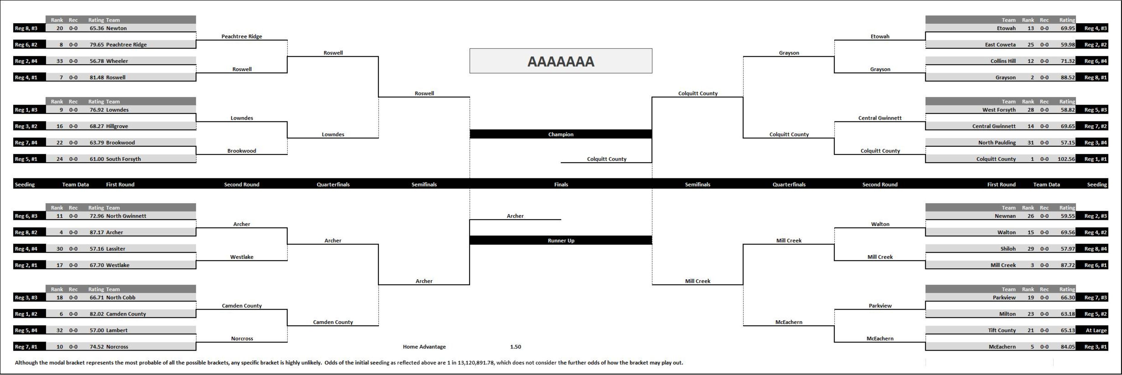 | Team | Region | Record | Rating | Playoffs | Qtrfinals | Semifinals | Finals | Champion | Odds |