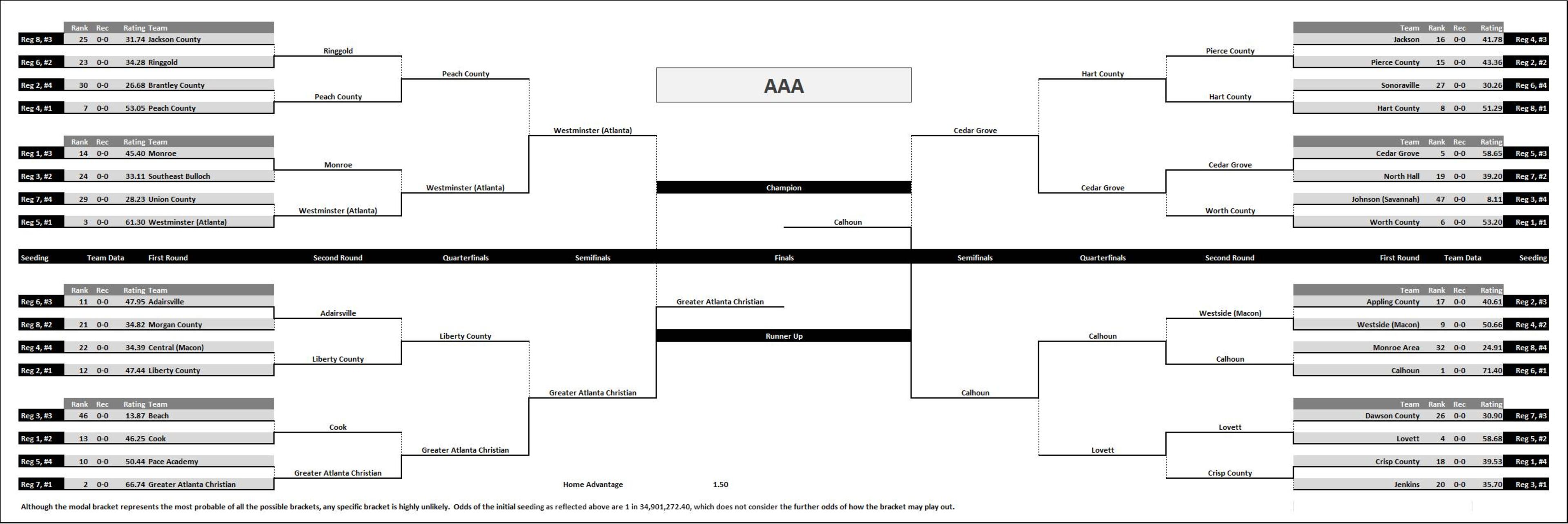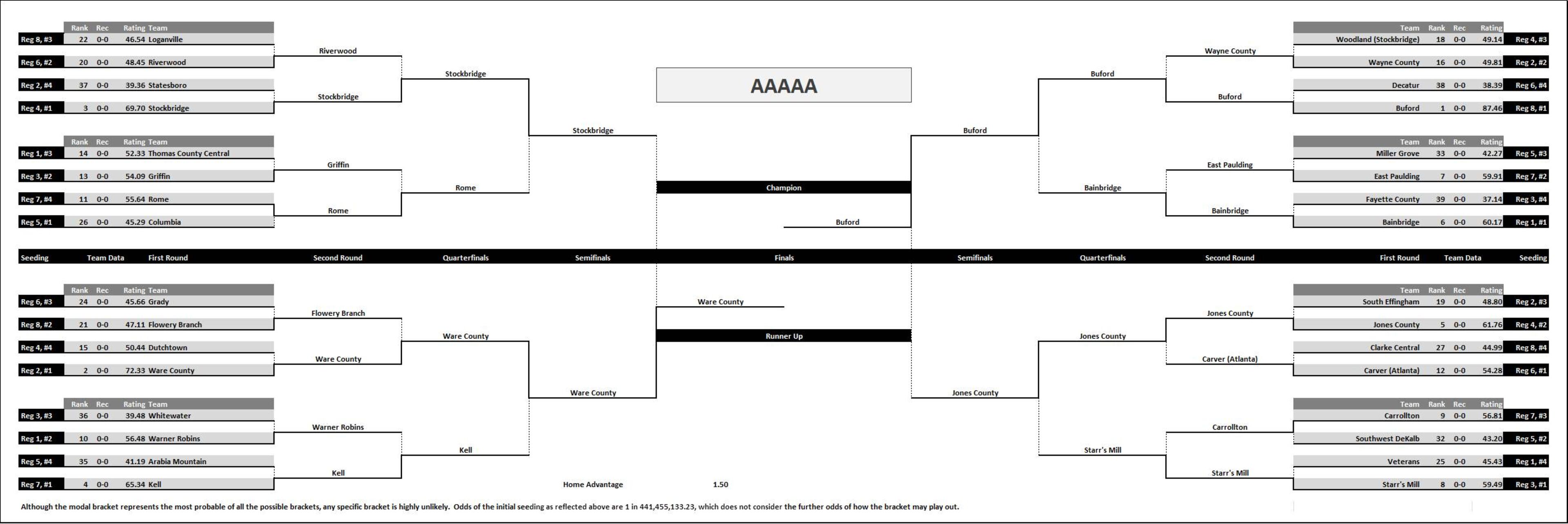All out of state opponents were considered equal to the average of the GHSA team’s classification (i.e., out of state opponents of Class AAAAAAA GHSA teams were treated as an average Class AAAAAAA team).