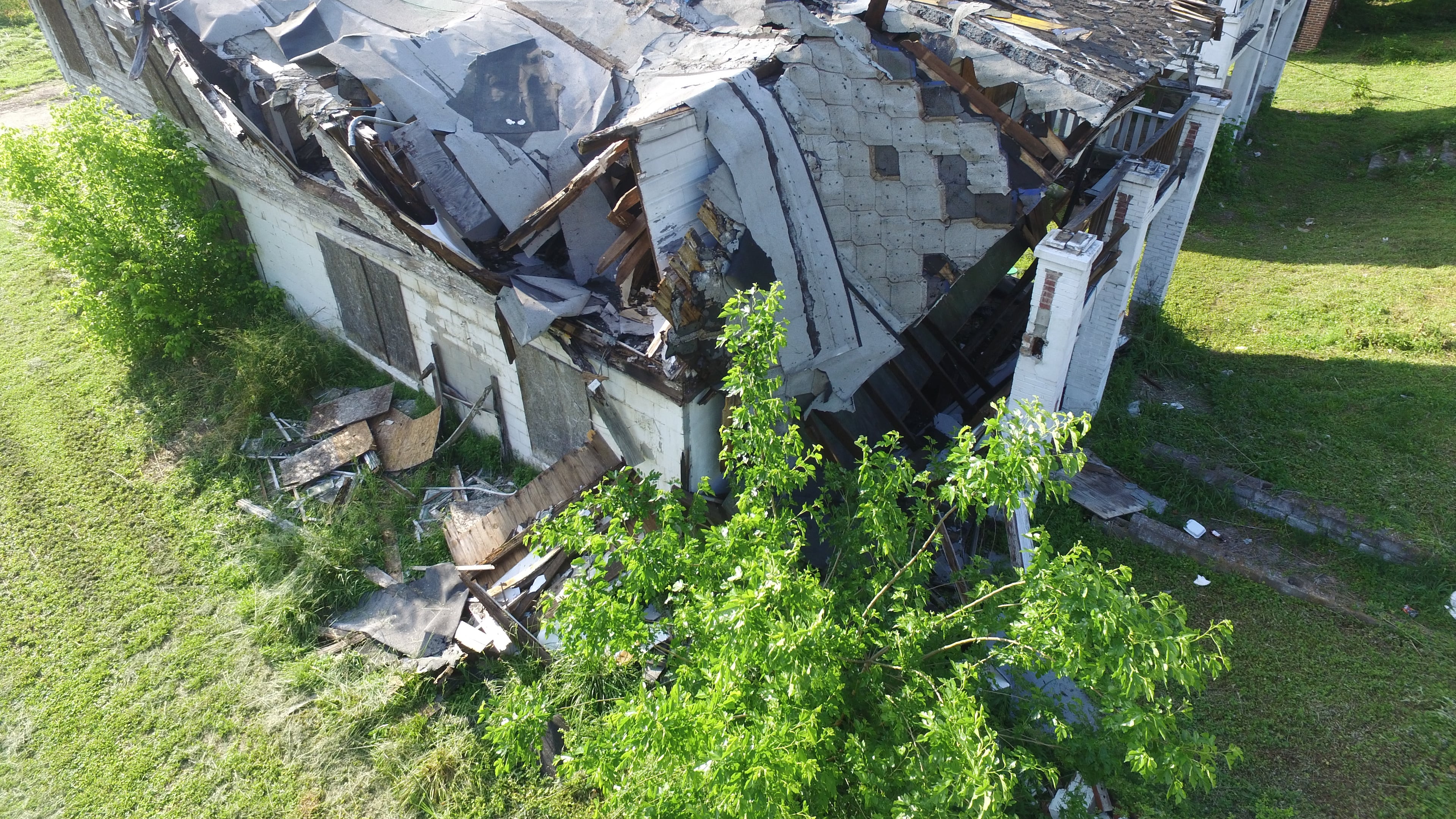 neighborhoods show the skeletal remains of long-abandoned properties. The crumbling roofs would look at home in a war zone.