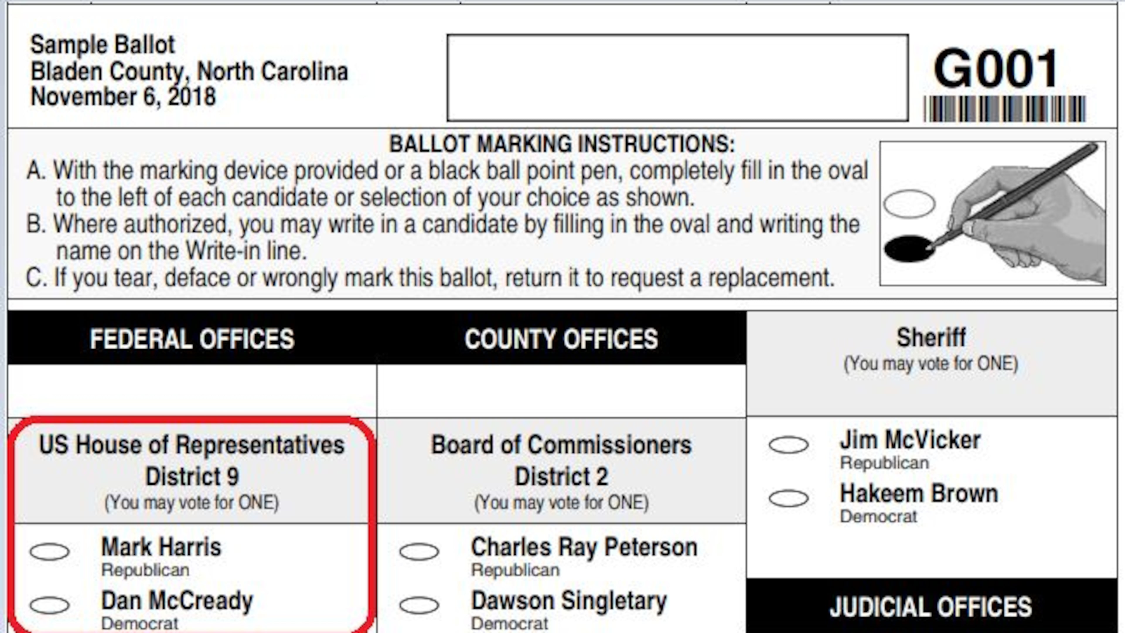 In Bladen County, 61 percent of the accepted absentee by mail ballots voted for Republican Mark Harris - the only county to do so," wrote Bitzer, who found that did not track with the party registration of those voting.