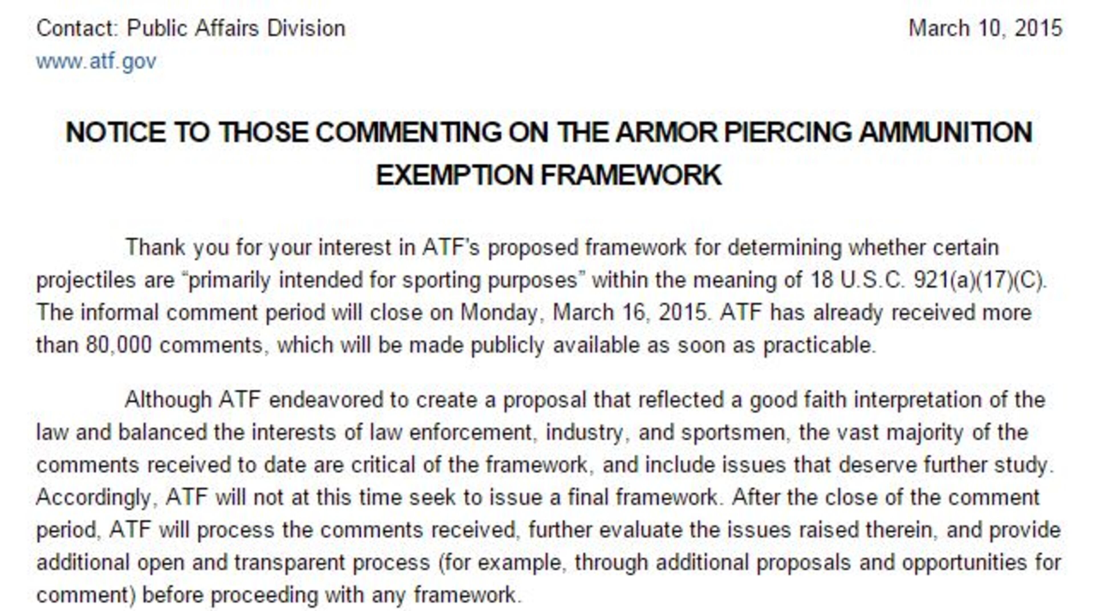 In a written statement, the ATF said more than 80,000 comments have been received - their plan is to make all of those publicly available.