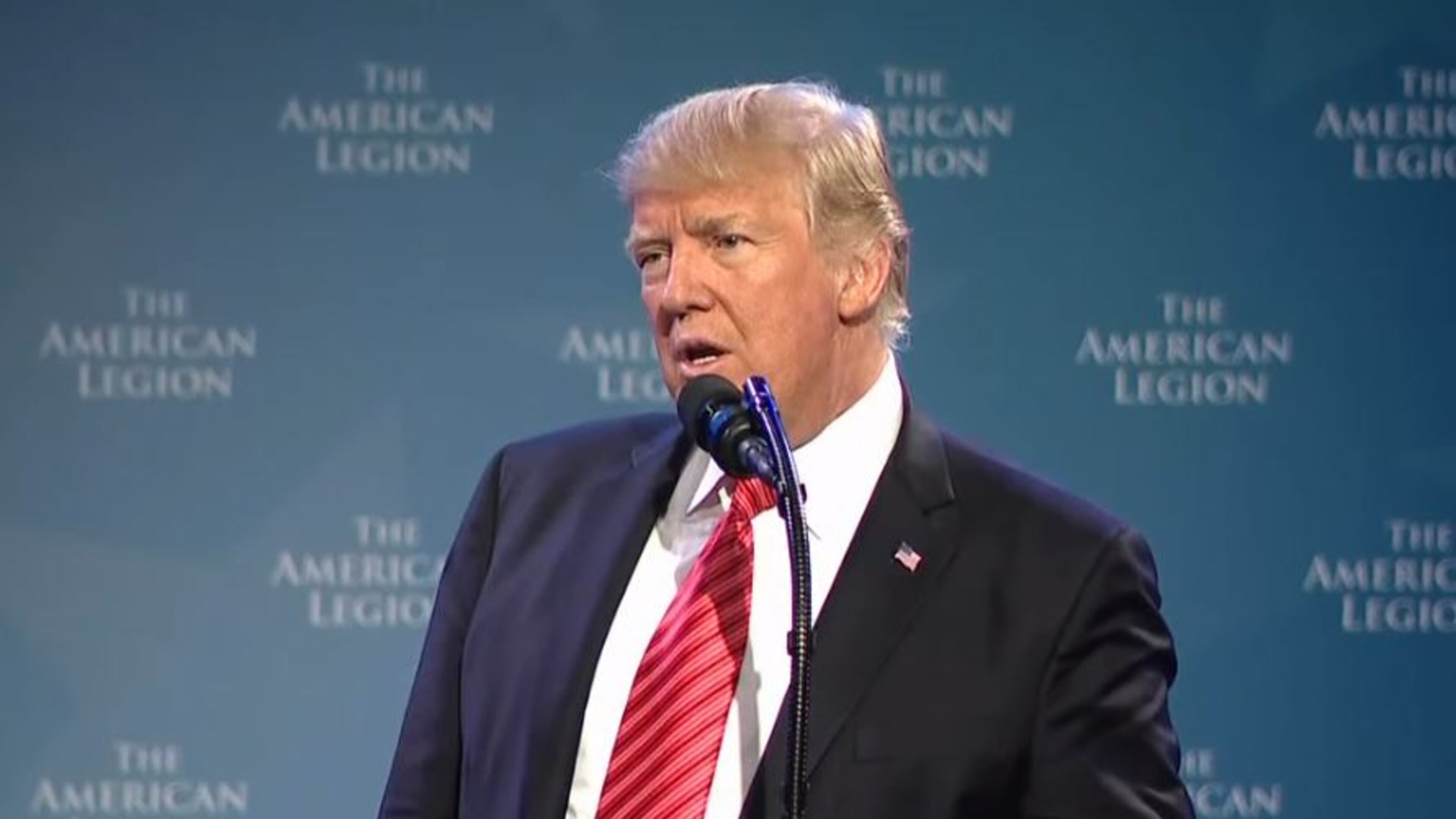 A day after a scorching attack on the news media and Republicans in the Senate, President Trump used a speech to an American Legion convention to call for unity in America, arguing there is "no division too deep for us to heal," as the President signed into law the latest bipartisan bill from Congress to reform work at the VA.