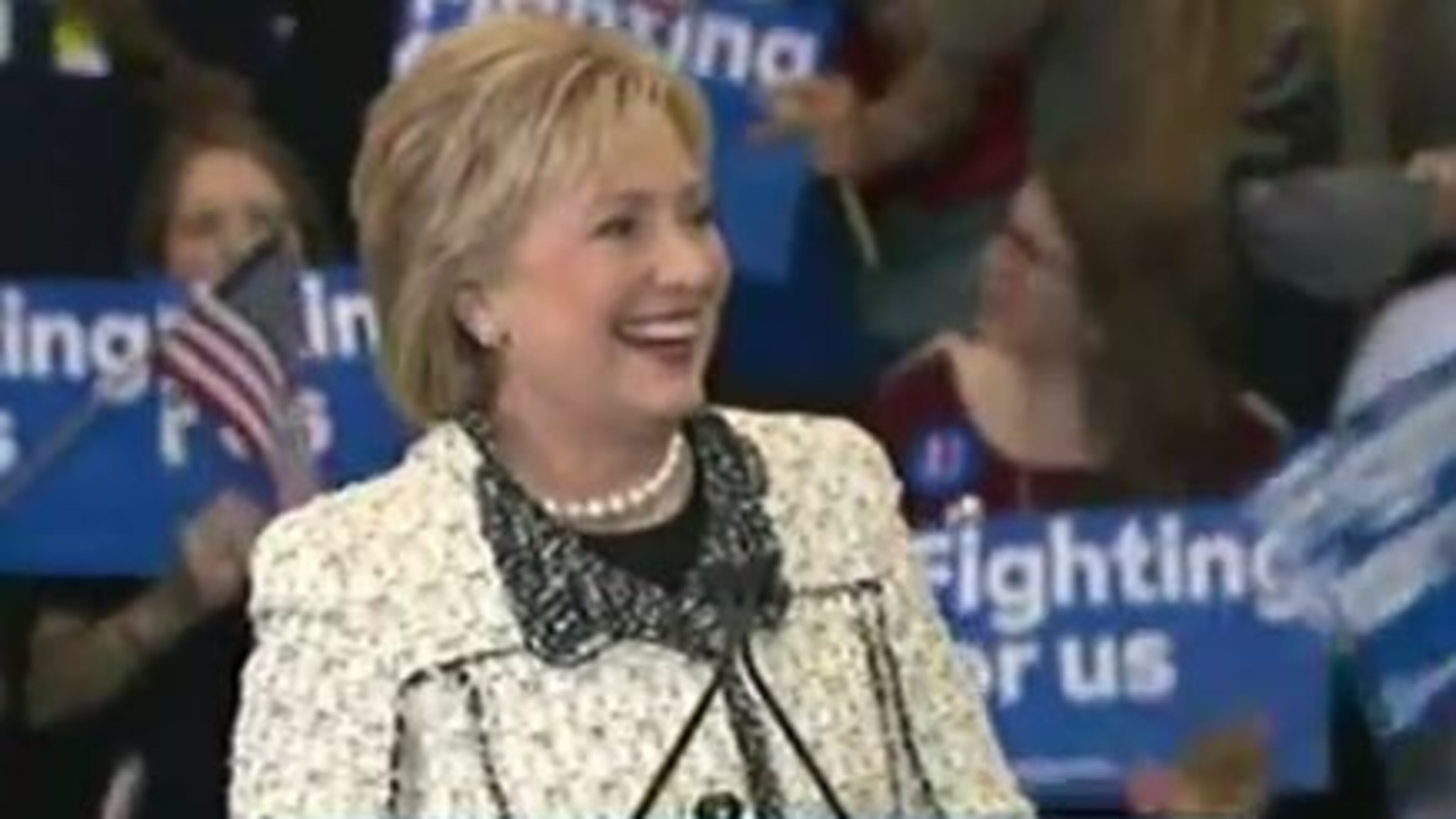 "Tomorrow, this campaign goes national!" Clinton said to cheers at her campaign celebration.