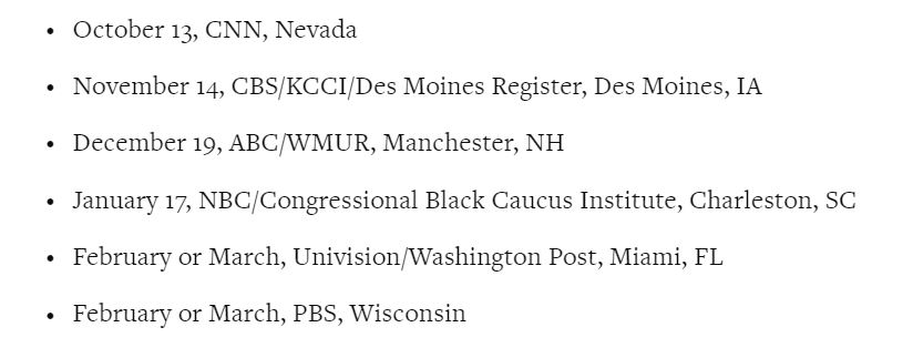 "With six debates scheduled - at a pace of roughly one per month - voters will have ample opportunities to hear our candidates discuss their visions for our country’s future," the DNC proclaimed in a news release.