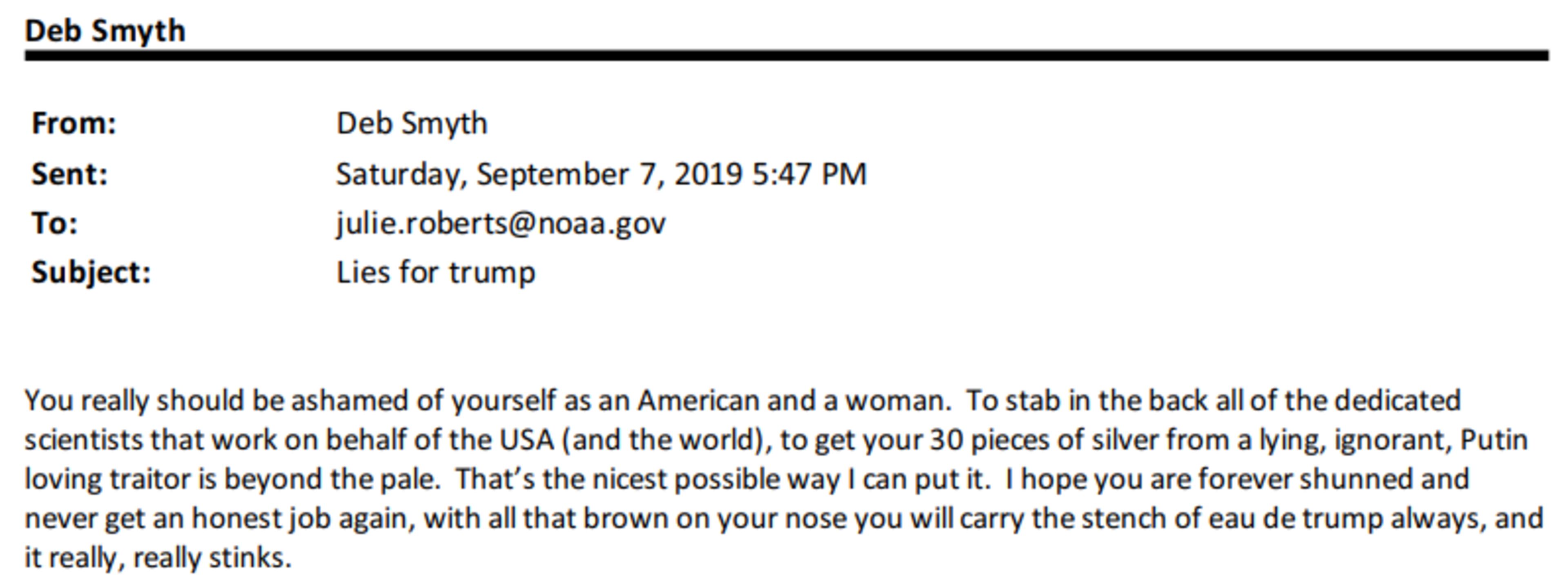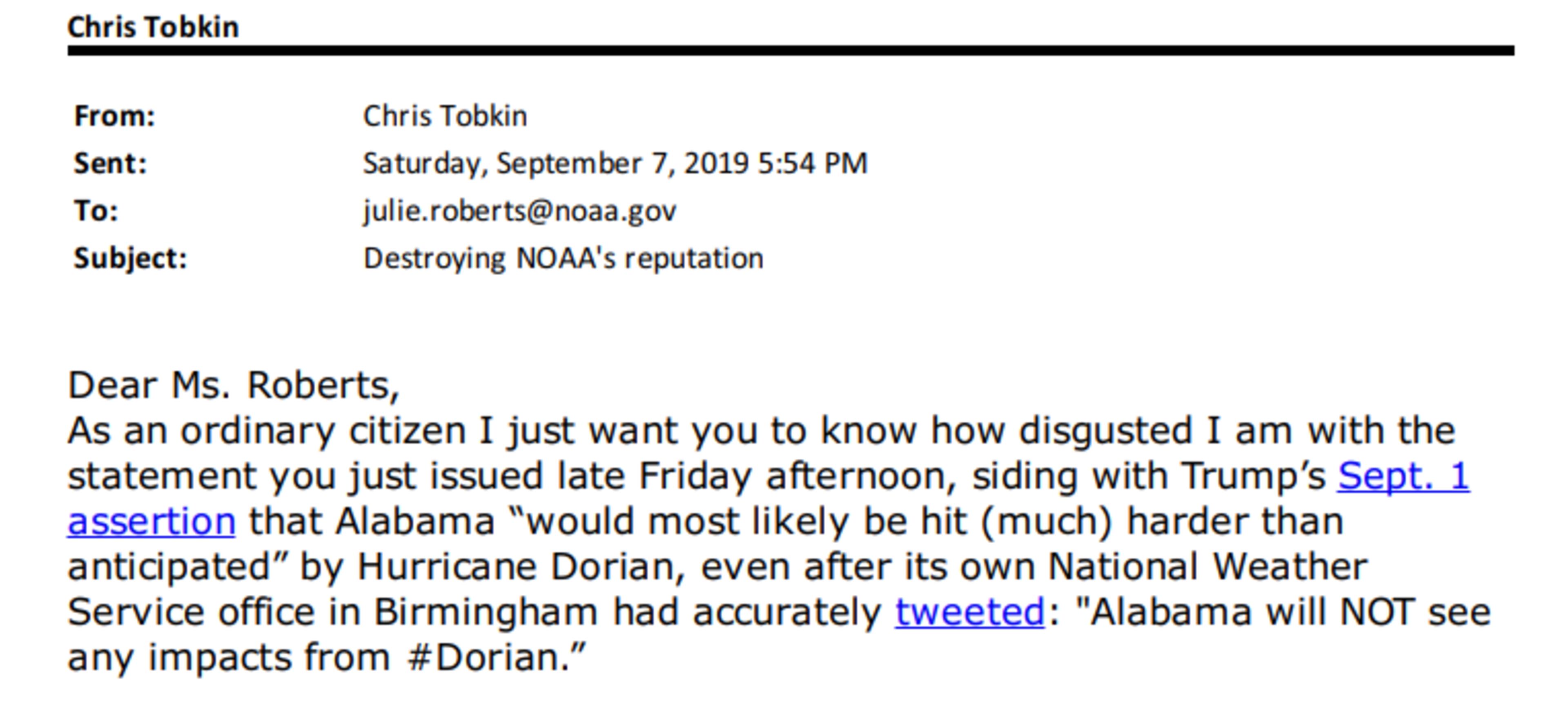 Also included were angry emails from people outside of the Weather Service, who accused NOAA officials of giving in to the President.