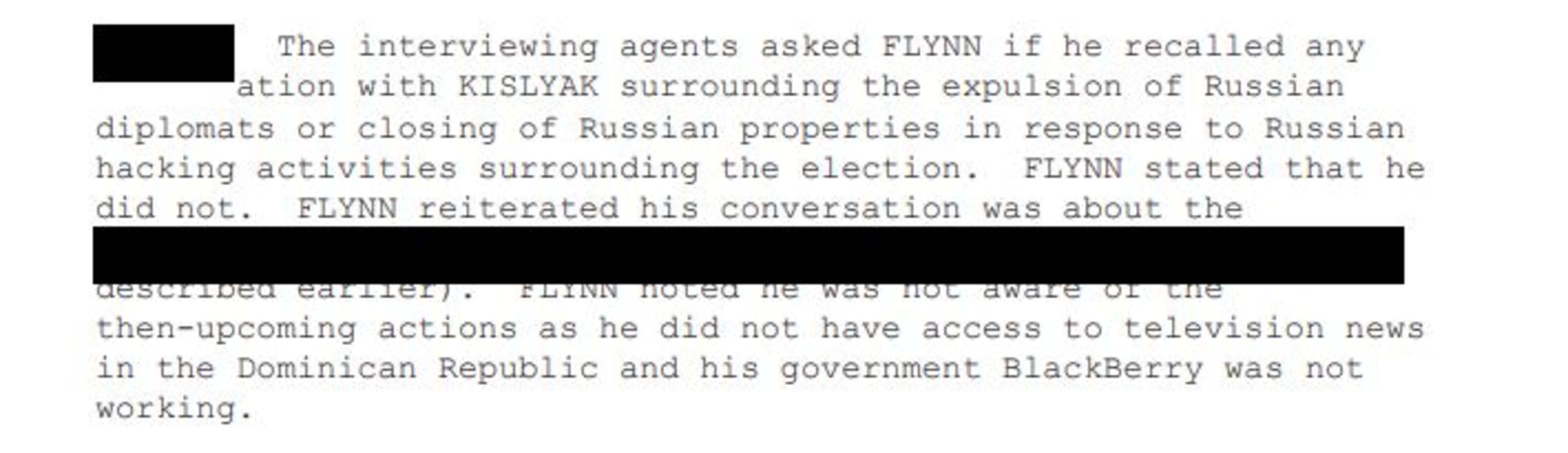 "The interviewing agents asked FLYNN if he made any comment to KISLYAK about voting in a certain manner, or slowing down the vote, or if KISLYAK described any Russian response to a request by Flynn," the 302 reads.