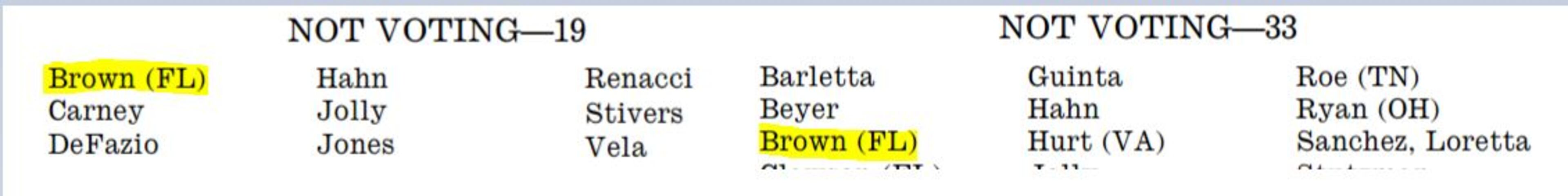 Brown returned to Capitol Hill for just two days of work after the November elections, voting in the House on November 14 and 15.