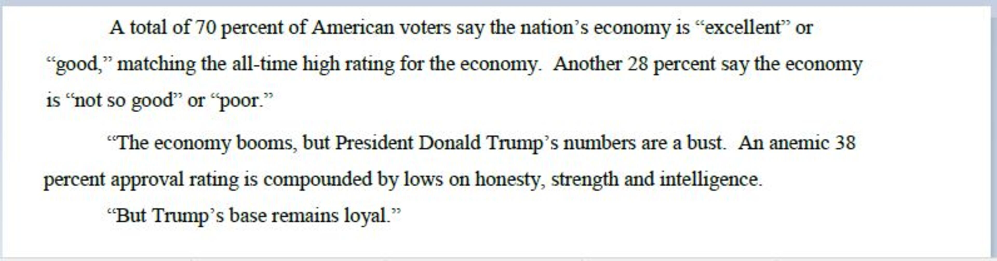 For example, a recent poll by Quinnipiac University showed that despite a record level of optimism about the economy, President Trump's disapproval ratings were very high, showing a major disconnect in the usual prediction that voters will vote their pocketbooks, and reward the party in power for good economic times.