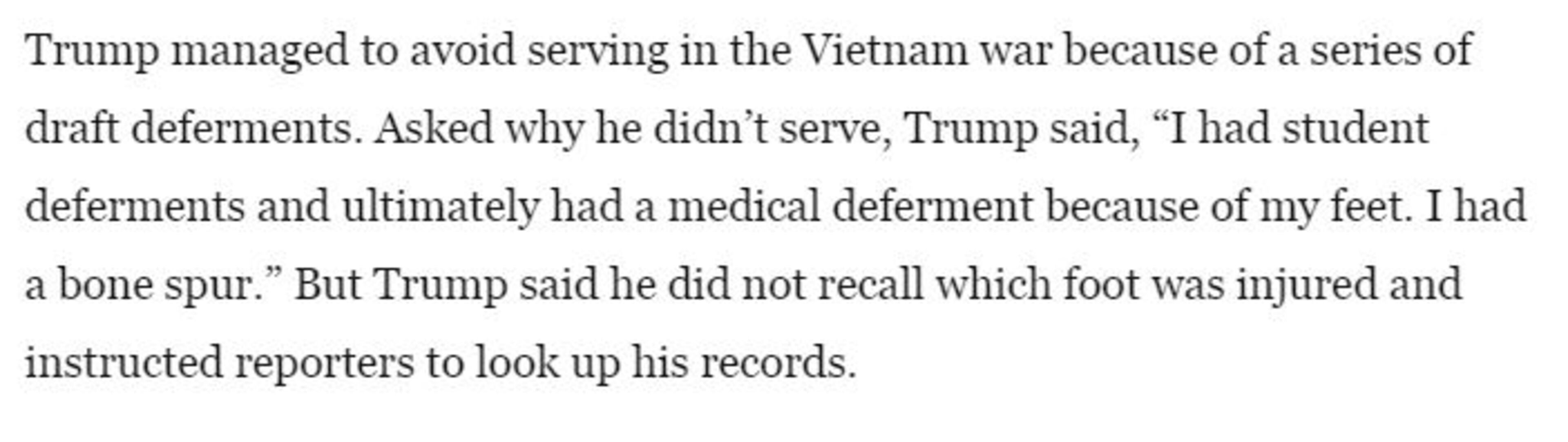 After his remarks at a GOP event in Iowa, Trump sparred with reporters over what he had said - and then was asked about his own military service during the Vietnam War. The Washington Post wrote it up this way: