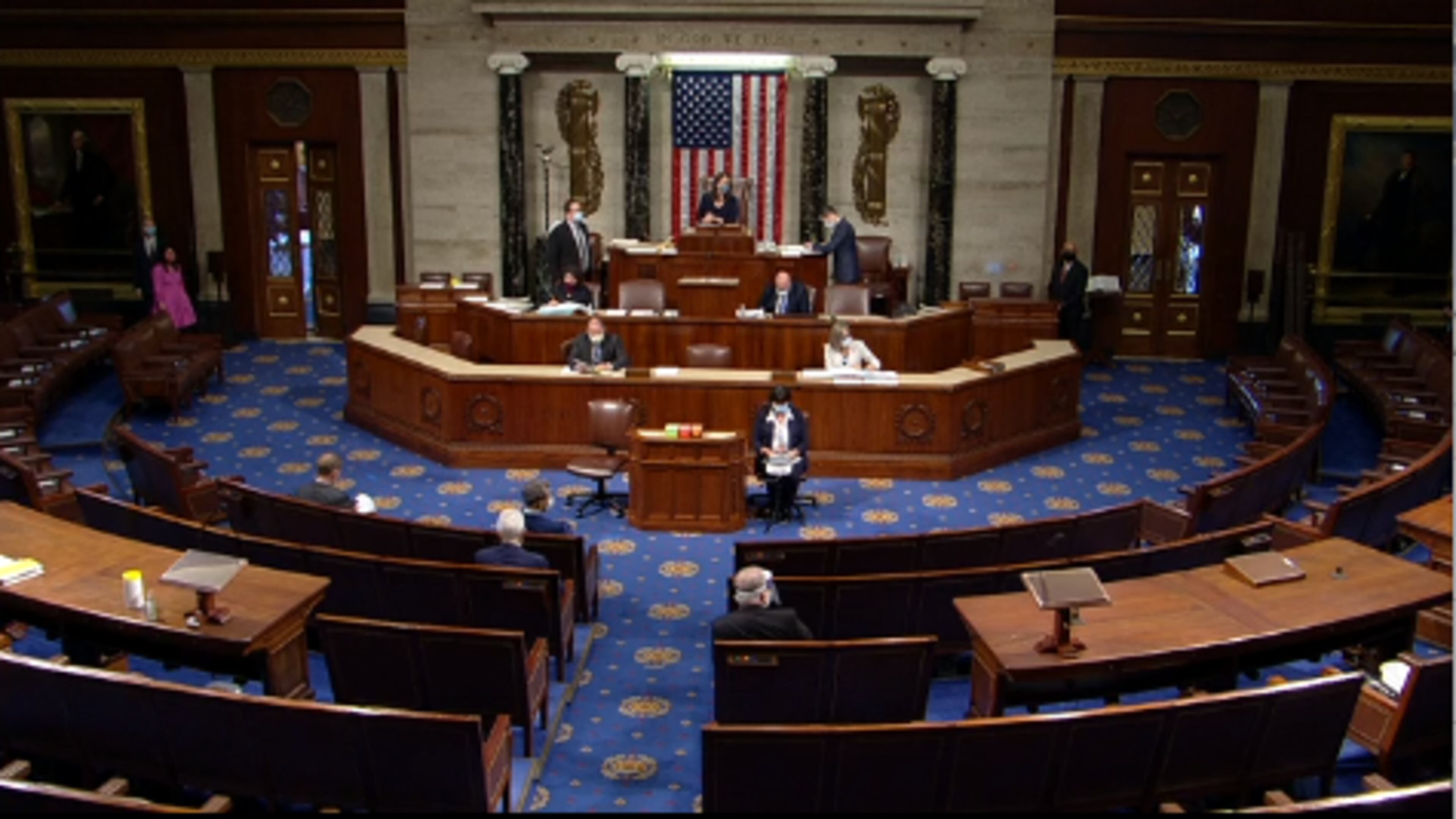 "Madam Speaker, as the member designated by Ms. Bass of California, pursuant to House Resolution 965, I inform the House that Ms. Bass will vote yea," said Rep. David Cicilline (D-RI), as those were repeated by Democratic lawmakers who were designated to cast votes for those not in the House Chamber.